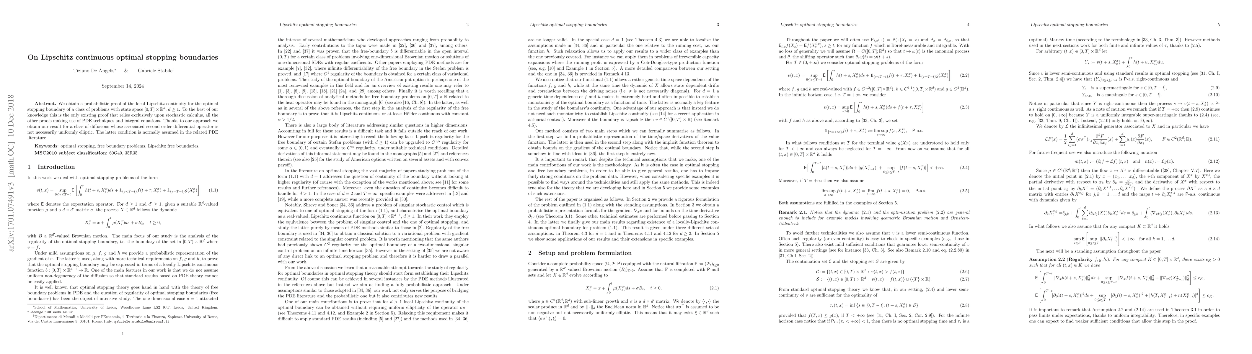 This paper presents a probabilistic proof of the local Lipschitz continuity for optimal stopping boundaries in a stochastic calculus framework, without relying on PDE techniques, applicable to diffusions with non-uniformly elliptic differential operators. This approach broadens the applicability of the result compared to existing methods.