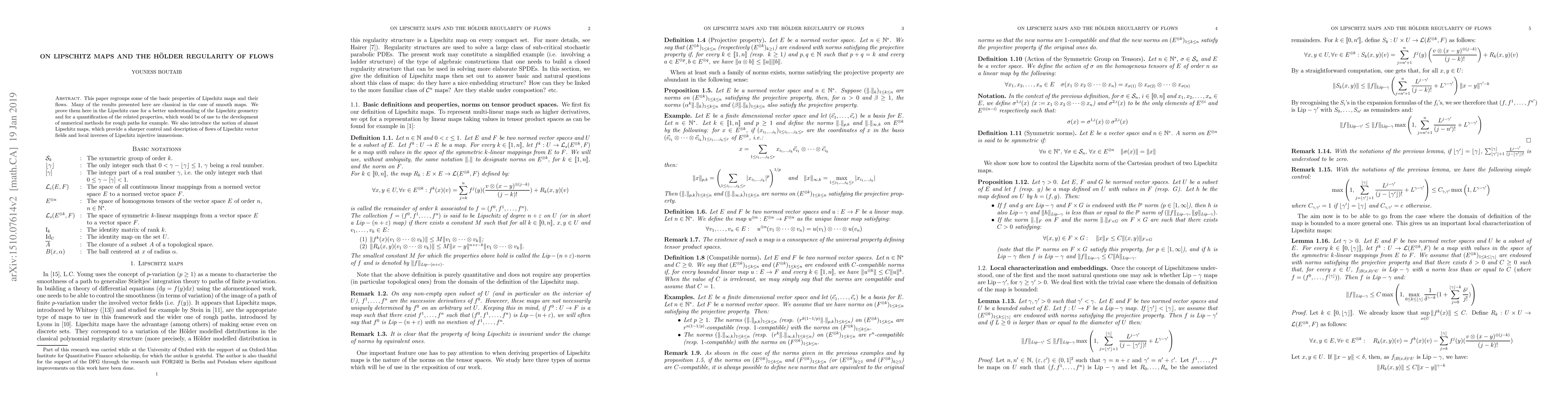 This paper regroups some of the basic properties of Lipschitz maps and their flows. Many of the results presented here are classical in the case of smooth maps. We prove them here in the Lipschitz case for a better understanding of the Lipschitz geometry and for a quantification of the related properties, which would be of use to the development of numerical methods for rough paths for example. We also introduce the notion of almost Lipschitz maps, which provide a sharper control and description of flows of Lipschitz vector fields and local inverses of Lipschitz injective immersions