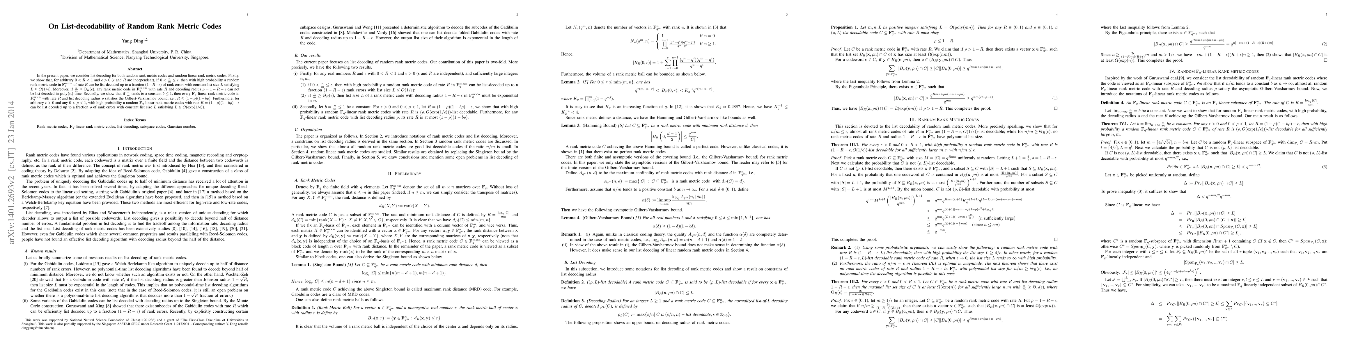 codes and random linear rank metric codes. Firstly, we show that, for arbitrary