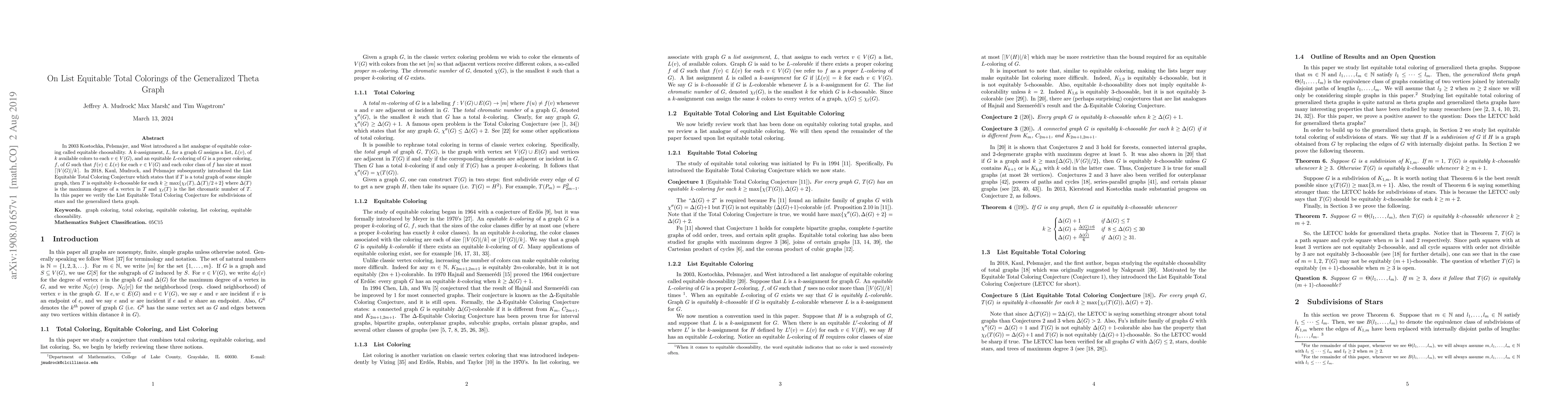 This paper verifies the List Equitable Total Coloring Conjecture for subdivisions of stars and the generalized theta graph, addressing equitable choosability of total graphs based on introduced parameters like list chromatic number and maximum degree.