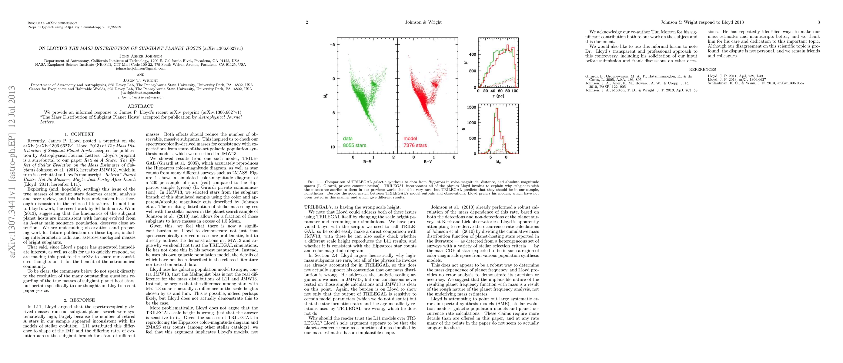 We provide an informal response to James P. Lloyd's recent arXiv preprint (arXiv:1306.6627v1) "The Mass Distribution of Subgiant Planet Hosts", accepted for publication by Astrophysical Journal Letters.