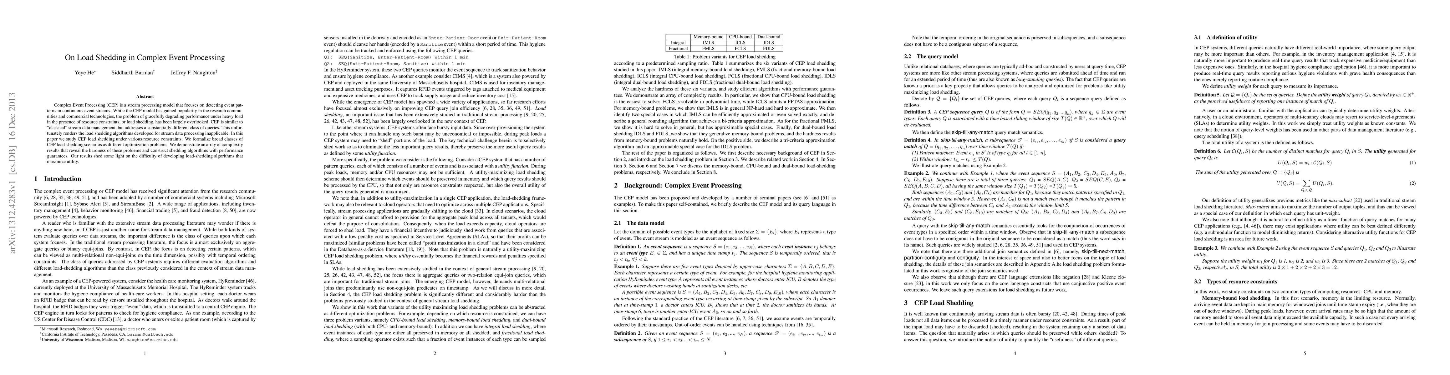 This paper investigates the problem of load shedding in Complex Event Processing (CEP) under various resource constraints, formalizing it as different optimization problems. It reveals the complexity and difficulty of developing effective load-shedding algorithms that maximize utility, presenting algorithms with performance guarantees.