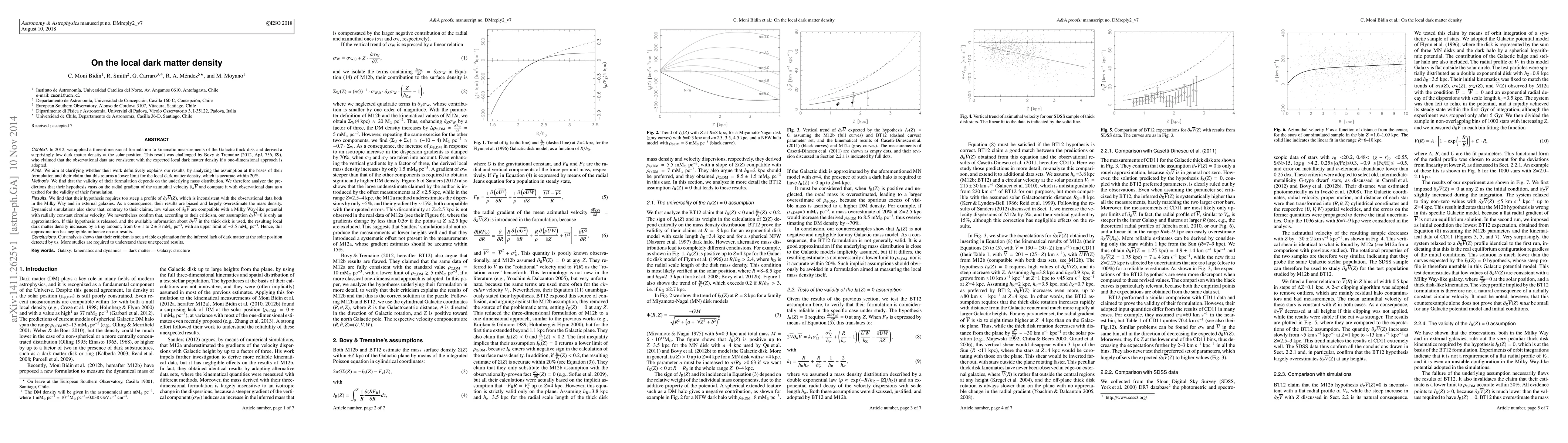 In 2012, we applied a three-dimensional formulation to kinematic measurements of the Galactic thick disk and derived a surprisingly low dark matter density at the solar position. This result was challenged by Bovy & Tremaine (2012, ApJ, 756, 89), who claimed that the observational data are consistent with the expected dark matter density if a one-dimensional approach is adopted. We analyze the assumption at the bases of their formulation and their claim that this returns a lower limit for the local dark matter density, which is accurate within 20%. We find that the validity of their formulation depends on the underlying mass distribution. We therefore analyze the predictions that their hypothesis casts on the radial gradient of the azimuthal velocity dV/dR and compare it with observational data as a testbed for the validity of their formulation. We find that their hypothesis requires too steep a profile of dV(Z)/dR, which is inconsistent with the observational data both in the Milky Way and in external galaxies. As a consequence, their results are biased and largely overestimate the mass density. Dynamical simulations also show that, contrary to their claims, low values of dV/dR are compatible with a Milky Way like potential with radially constant circular velocity. We nevertheless confirm that, according to their criticism, our assumption dV/dR=0 is only an approximation. If this hypothesis is released, and the available information about dV/dR in the thick disk is used, the resulting local dark matter density increases by a tiny amount, from 0+-1 to 2+-3 mM_sun pc^(-3), with an upper limit of ~3.5 mM_sun pc^(-3). Hence, this approximation has negligible influence on our results. Our analysis shows that their criticism is not a viable explanation for the inferred lack of dark matter at the solar position detected by us. More studies are required to understand these unexpected results.