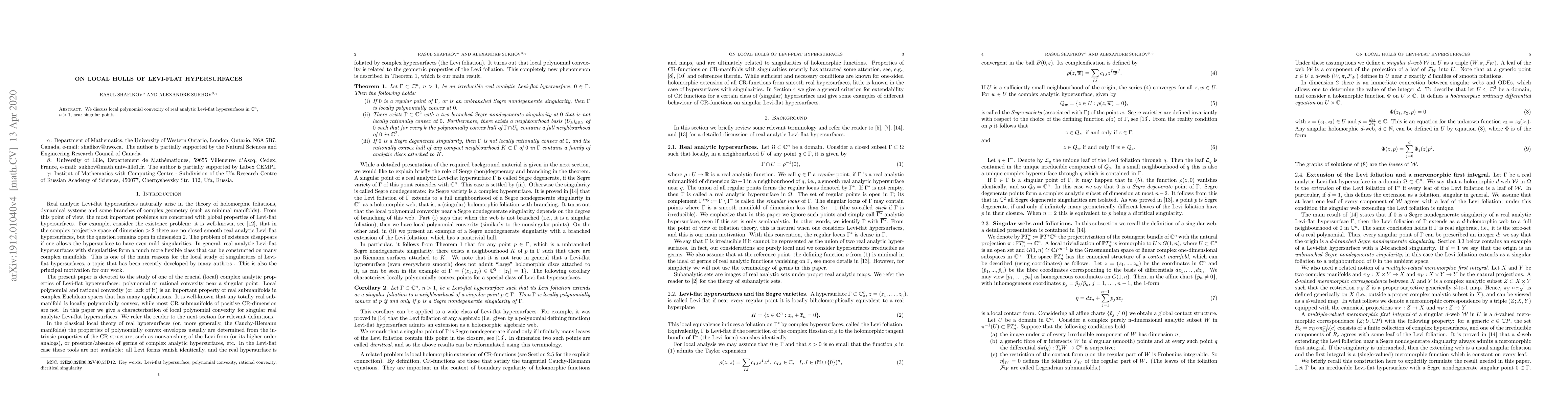 Summary: This paper investigates the local polynomial convexity of real analytic Levi-flat hypersurfaces in complex spaces $\mathbb{C}^n$ ($n>1$), focusing on their behavior near singular points. It explores the properties of these hypersurfaces in the vicinity of singularities.