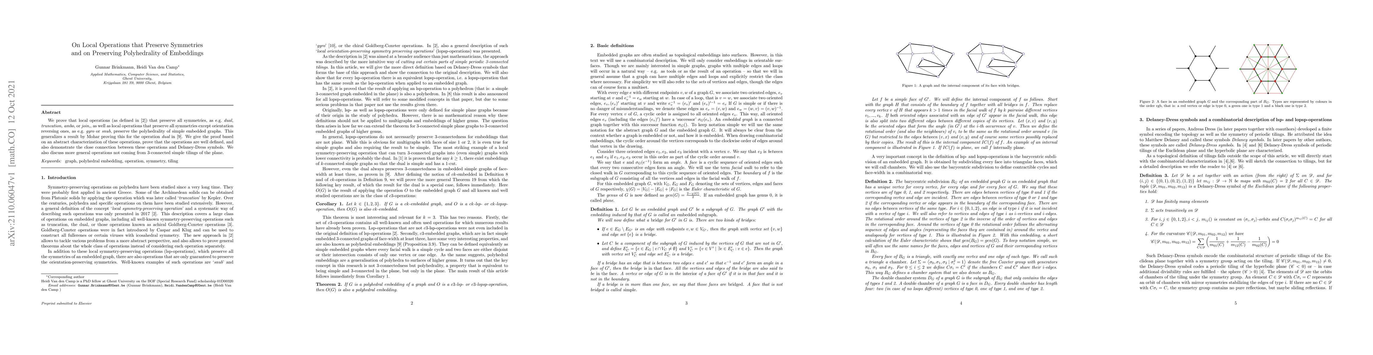 This paper proves that local operations preserving symmetries, such as dual, truncation, ambo, or join, maintain the polyhedrality of simple embedded graphs. It generalizes previous results and establishes a connection to Delaney-Dress symbols, extending beyond operations derived from 3-connected simple tilings.