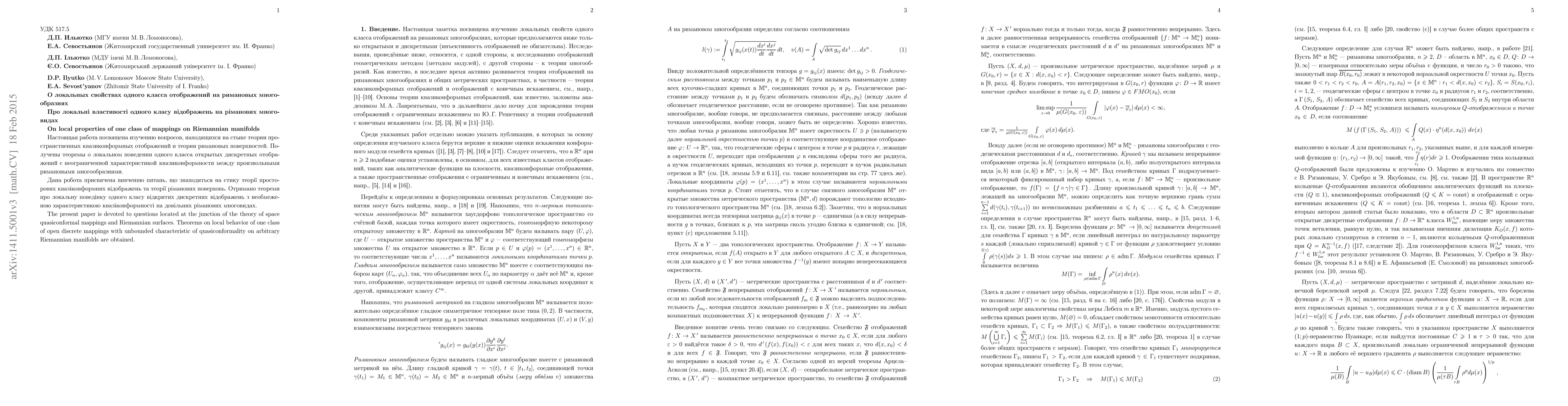 This paper explores the local properties of a specific class of open discrete mappings on Riemannian manifolds, focusing on their quasiconformal characteristics and deriving theorems about their local behavior.