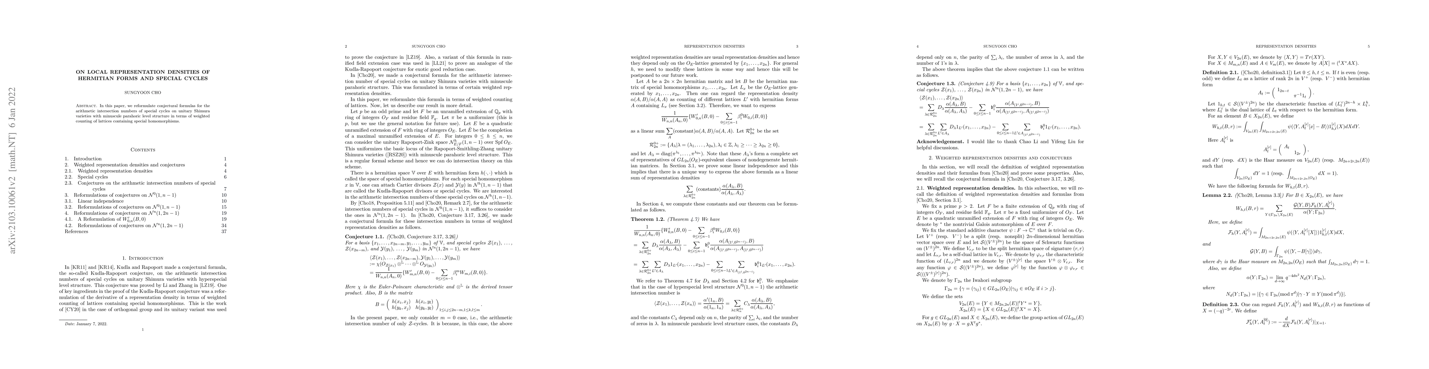 This paper reformulates conjectures about arithmetic intersection numbers on unitary Shimura varieties using lattice counting involving special homomorphisms, focusing on those with a minuscule parahoric level structure. The approach aims to provide a new perspective on the density of local representations of hermitian forms.