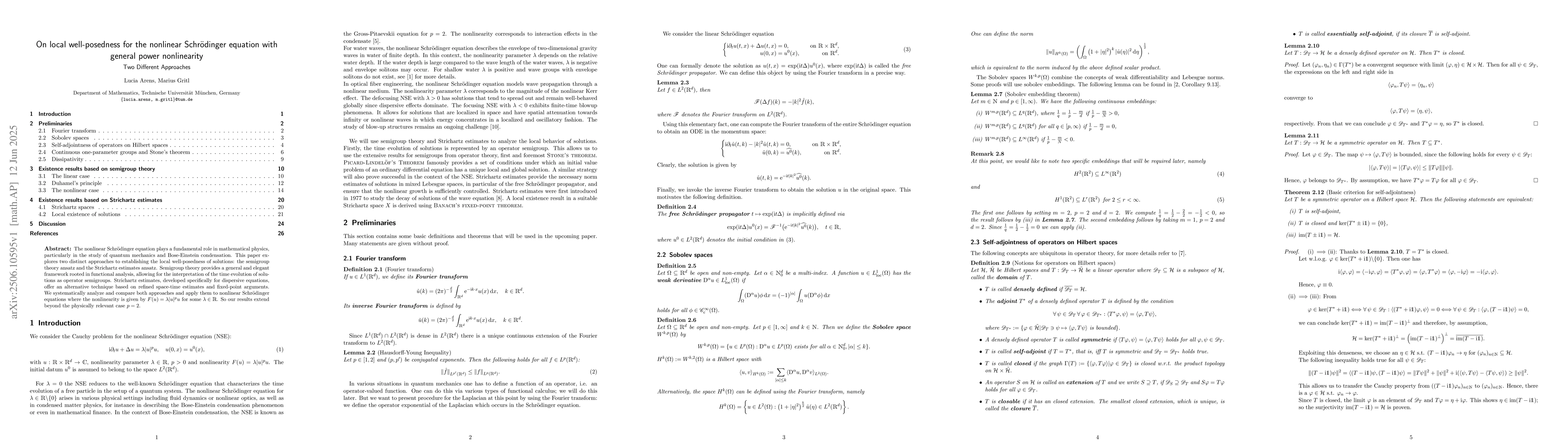The nonlinear Schr\"odinger equation plays a fundamental role in mathematical physics, particularly in the study of quantum mechanics and Bose-Einstein condensation. This paper explores two distinct approaches to establishing the local well-posedness of solutions: the semigroup theory ansatz and the Strichartz estimates ansatz. Semigroup theory provides a general and elegant framework rooted in functional analysis, allowing for the interpretation of the time evolution of solutions as operator semigroups. Strichartz estimates, developed specifically for dispersive equations, offer an alternative technique based on refined space-time estimates and fixed-point arguments. We systematically analyze and compare both approaches and apply them to nonlinear Schr\"odinger equations where the nonlinearity is given by $F(u)=\lambda|u|^p u$ for some $\lambda \in \mathbb{R}$. So our results extend beyond the physically relevant case $p=2$.