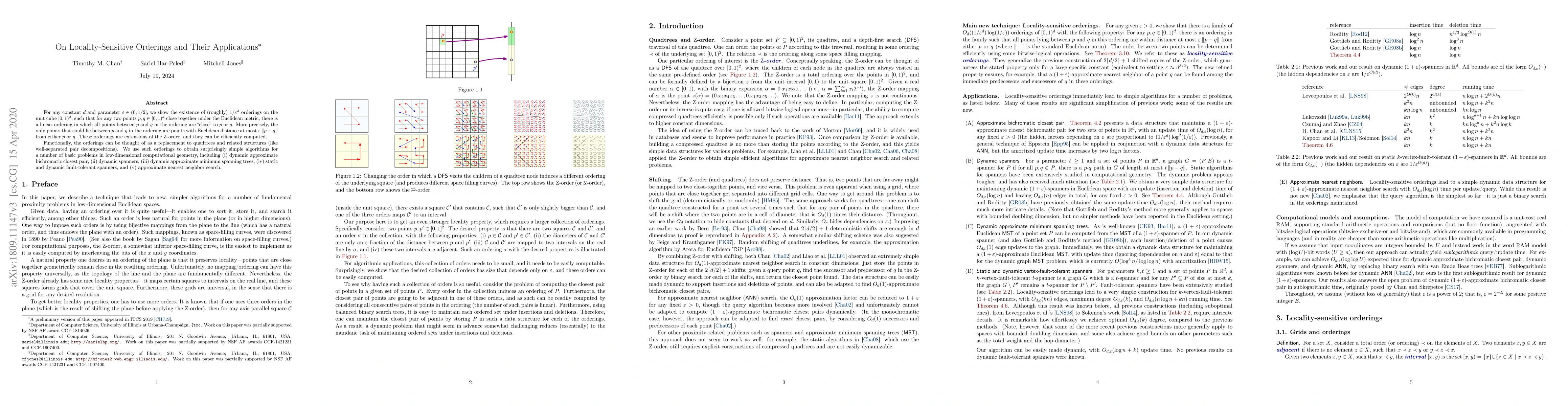 This paper introduces locality-sensitive orderings on the unit cube, which efficiently group points close in Euclidean distance together in linear orderings. These orderings serve as a replacement for quadtrees and simplify algorithms for various computational geometry problems, including dynamic approximate bichromatic closest pair and fault-tolerant spanners.
