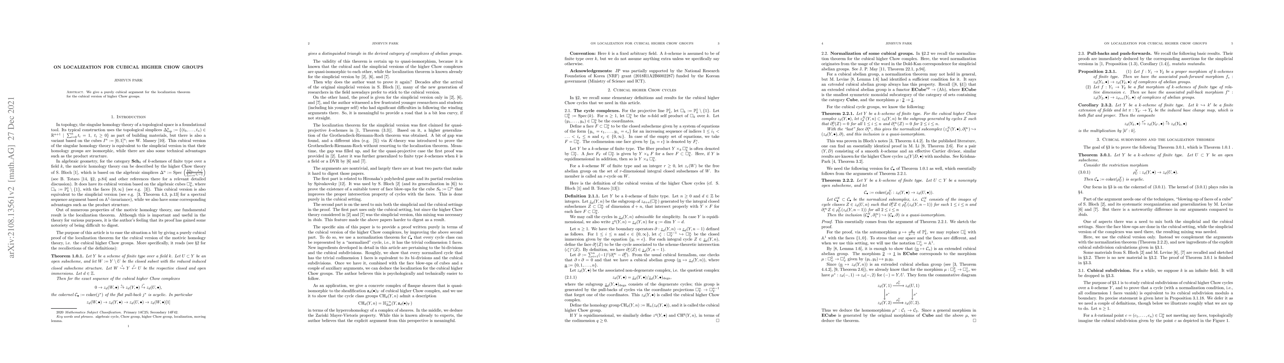 We give a purely cubical argument for the localization theorem for the cubical version of higher Chow groups.