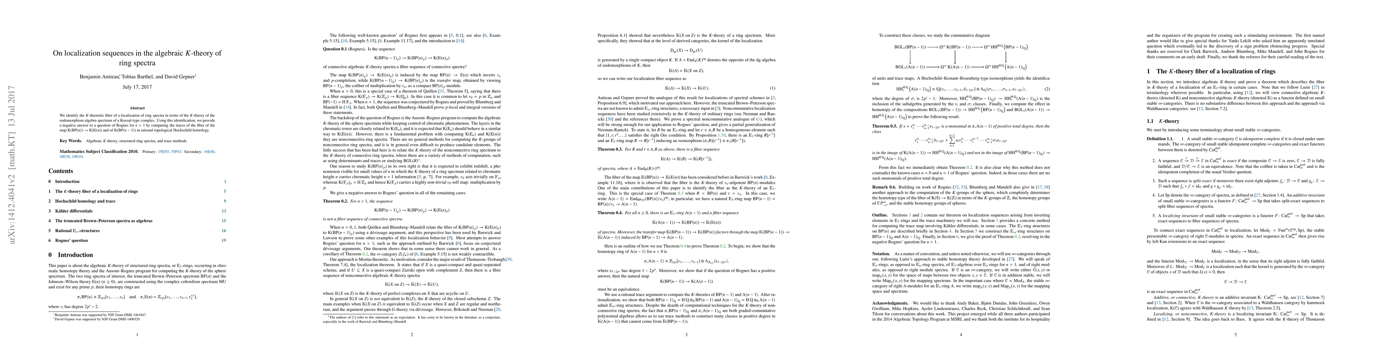 This paper localizes the algebraic K-theory of ring spectra, linking the $K$-theoretic fiber of a localization to the $K$-theory of a Koszul-type complex's endomorphism algebra. It answers Rognes' question in the negative for $n>1$ by comparing traces in rational topological Hochschild homology.