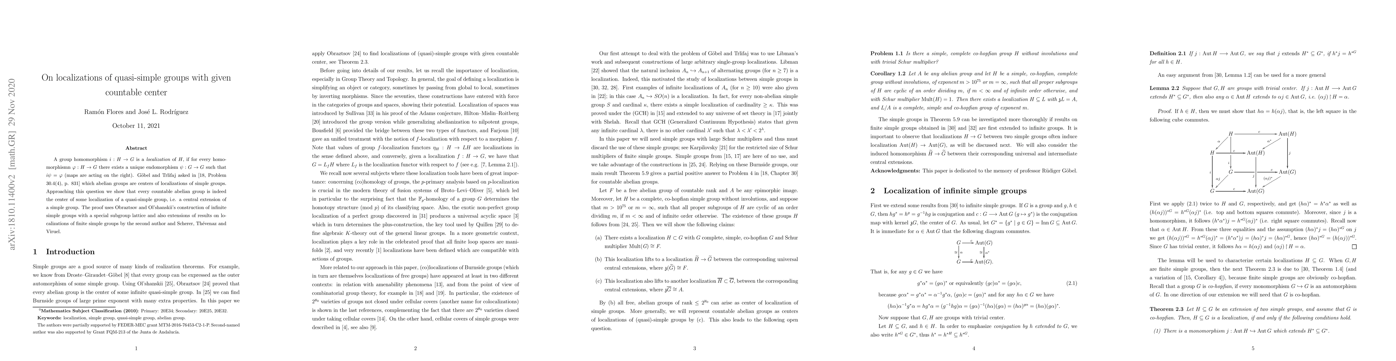 This paper demonstrates that every countable abelian group can serve as the center of a localization of a quasi-simple group, addressing a question posed by Göbel and Trlifaj. The proof leverages advanced constructions of infinite simple groups and extensions of localization results for finite simple groups.