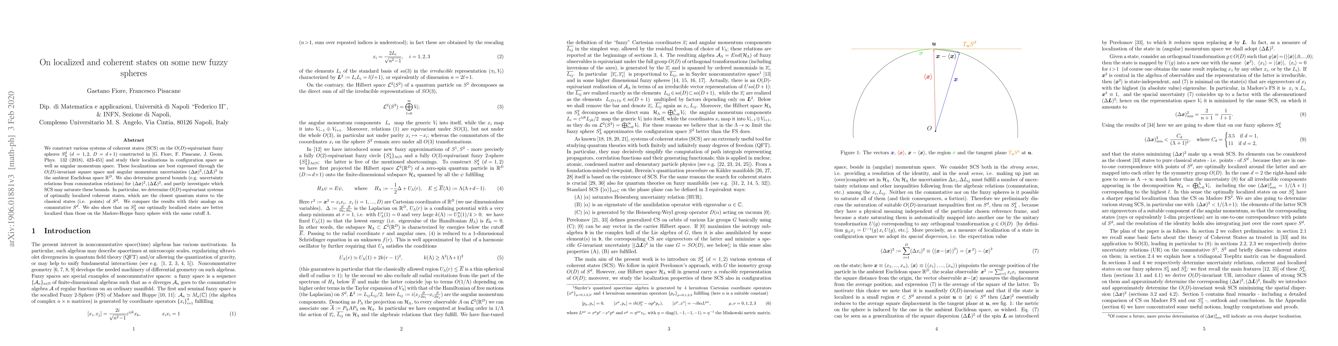This paper constructs coherent states on new fuzzy spheres and studies their localization in both configuration and angular momentum spaces. It determines optimal localized coherent states that best approximate classical points on the fuzzy spheres, comparing their localization properties to those on commutative spheres and showing improved localization on $S^2_\Lambda$.