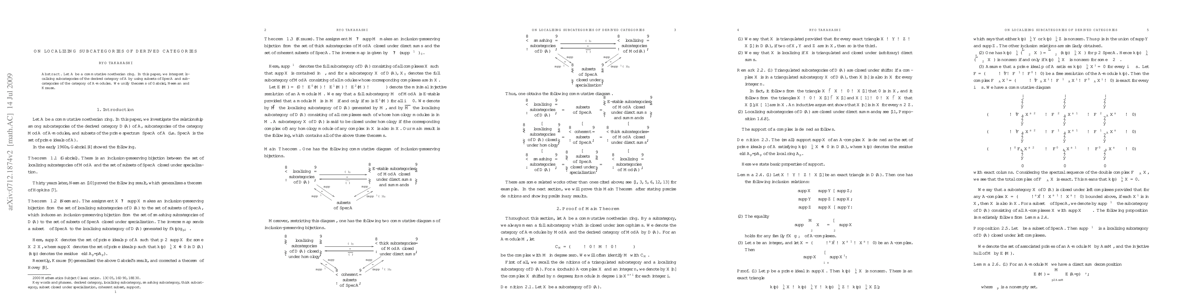 This paper presents a unified interpretation of localizing subcategories in the derived category of a commutative noetherian ring A, linking them to subsets of Spec A and subcategories of A-modules. It combines and extends previous theorems by Gabriel, Neeman, and Krause.