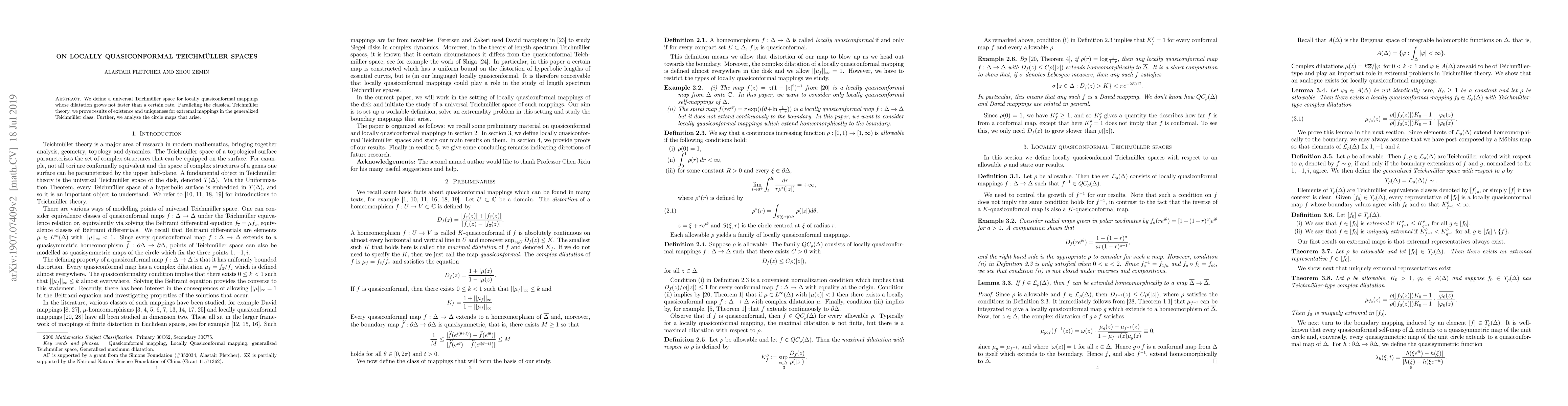 We define a universal Teichm\"uller space for locally quasiconformal mappings whose dilatation grows not faster than a certain rate. Paralleling the classical Teichm\"uller theory, we prove results of existence and uniqueness for extremal mappings in the generalized Teichm\"uller class. Further, we analyze the circle maps that arise.