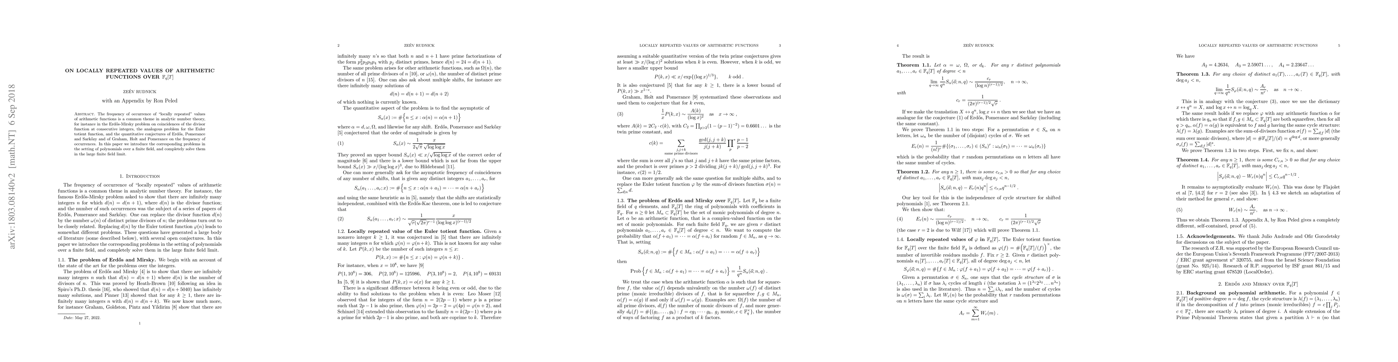 The frequency of occurrence of "locally repeated" values of arithmetic functions is a common theme in analytic number theory, for instance in the Erd\H{o}s-Mirsky problem on coincidences of the divisor function at consecutive integers, the analogous problem for the Euler totient function, and the quantitative conjectures of Erd\H{o}s, Pomerance and Sark\H{o}zy and of Graham, Holt and Pomerance on the frequency of occurrences. In this paper we introduce the corresponding problems in the setting of polynomials over a finite field, and completely solve them in the large finite field limit.