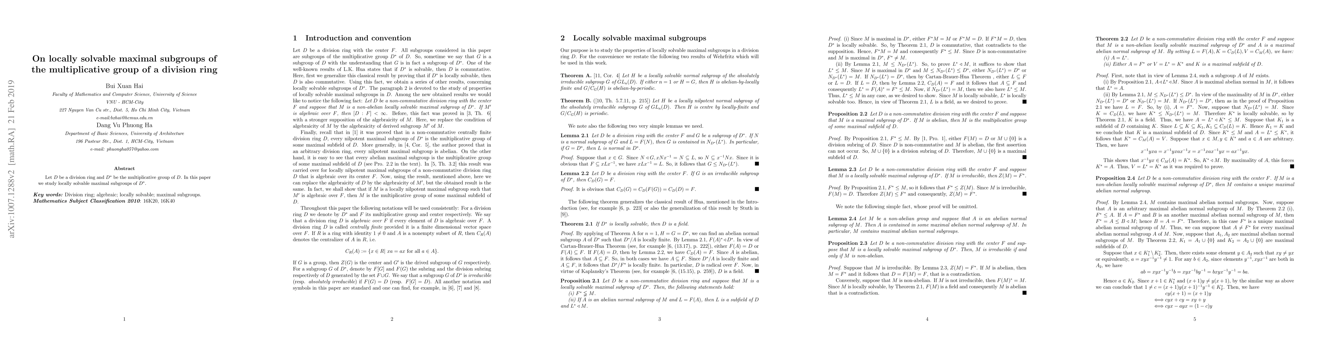 This paper investigates locally solvable maximal subgroups within the multiplicative group $D^*$ of a division ring $D$, aiming to understand their structural properties and significance.