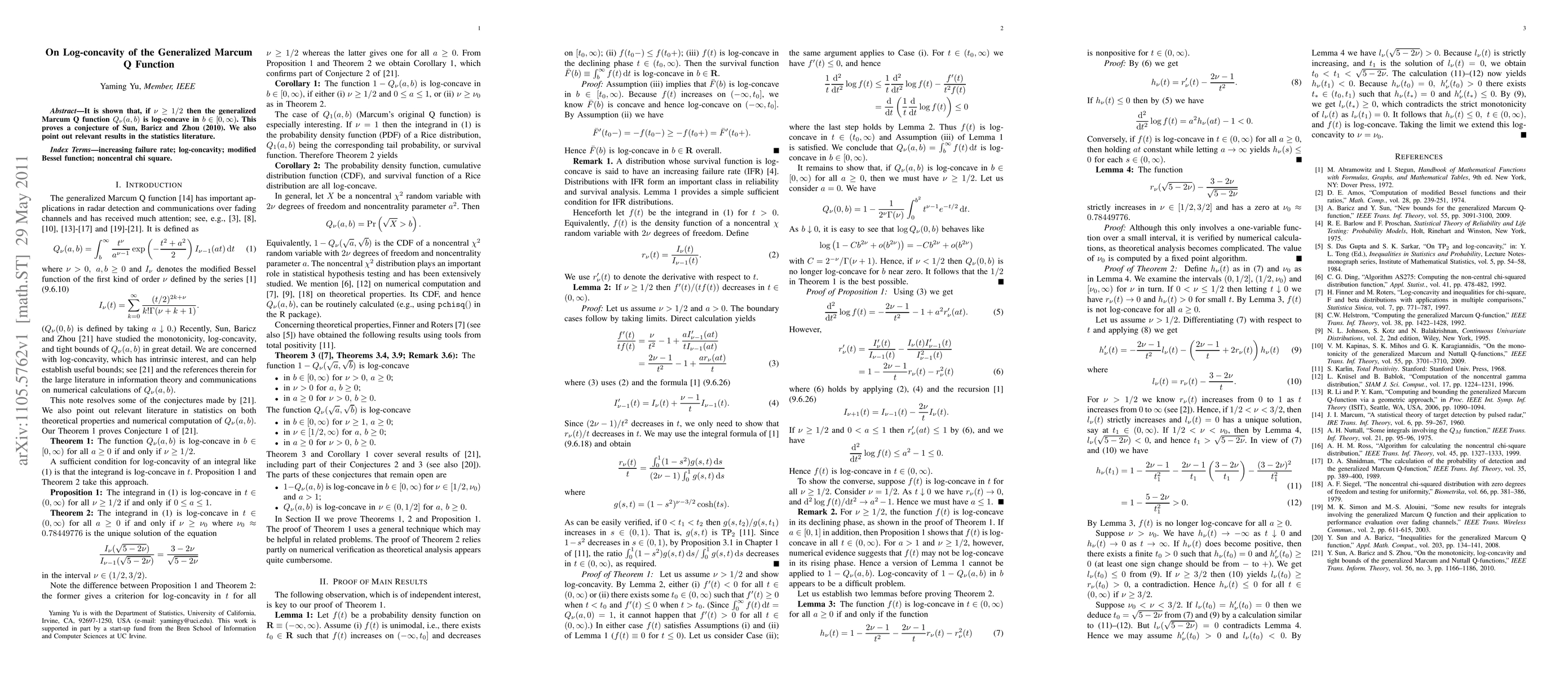 It is shown that, if nu >= 1/2 then the generalized Marcum Q function Q_nu(a,