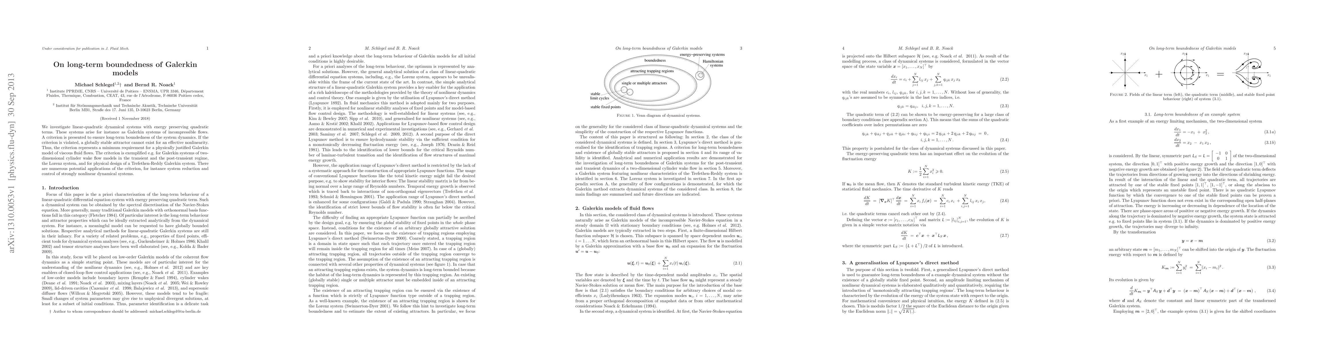 A research paper introduces a criterion to ensure long-term boundedness of Galerkin models for linear-quadratic dynamical systems, providing a minimum requirement for physically justified models of viscous fluid flows.