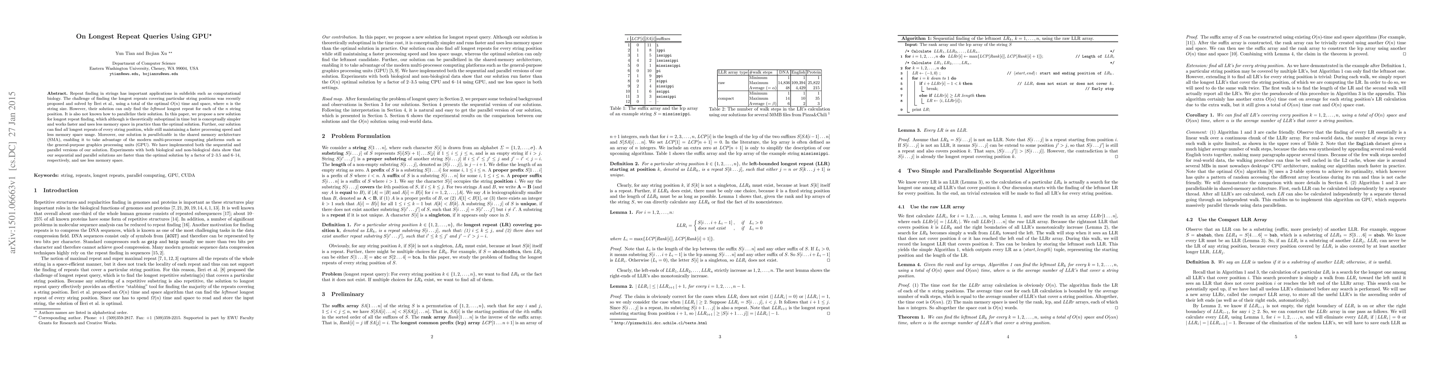 This paper proposes a new, simpler, and faster solution for finding all longest repeats in strings, which can be parallelized on GPUs. While theoretically suboptimal, it outperforms the optimal solution in practice, using less memory and achieving faster processing speeds.