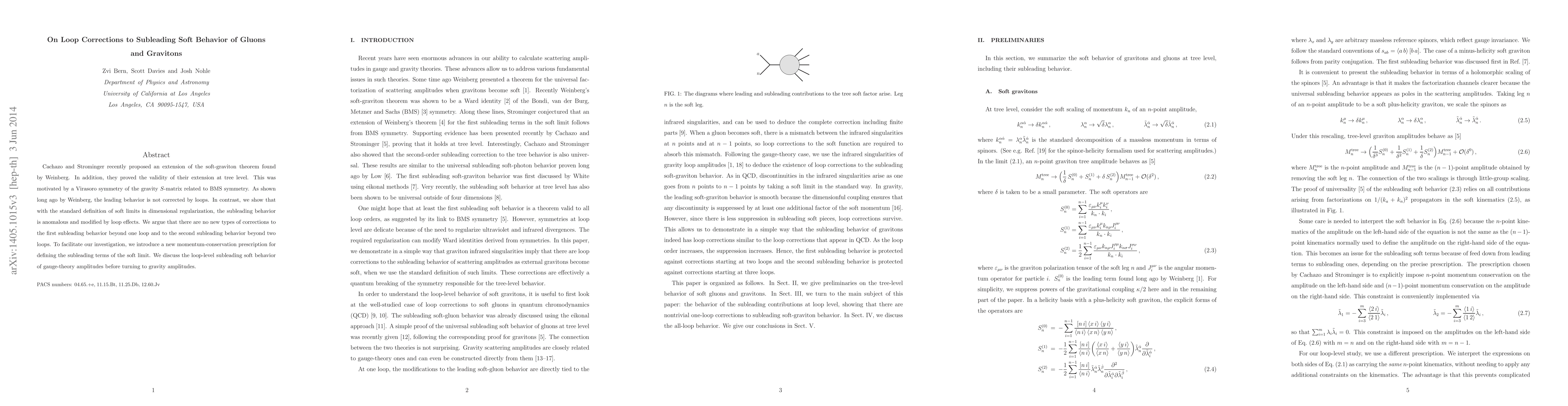 Researchers investigate how loop corrections affect soft behavior in gluons and gravitons, finding that one-loop corrections modify the first subleading behavior but no new corrections appear beyond two loops.