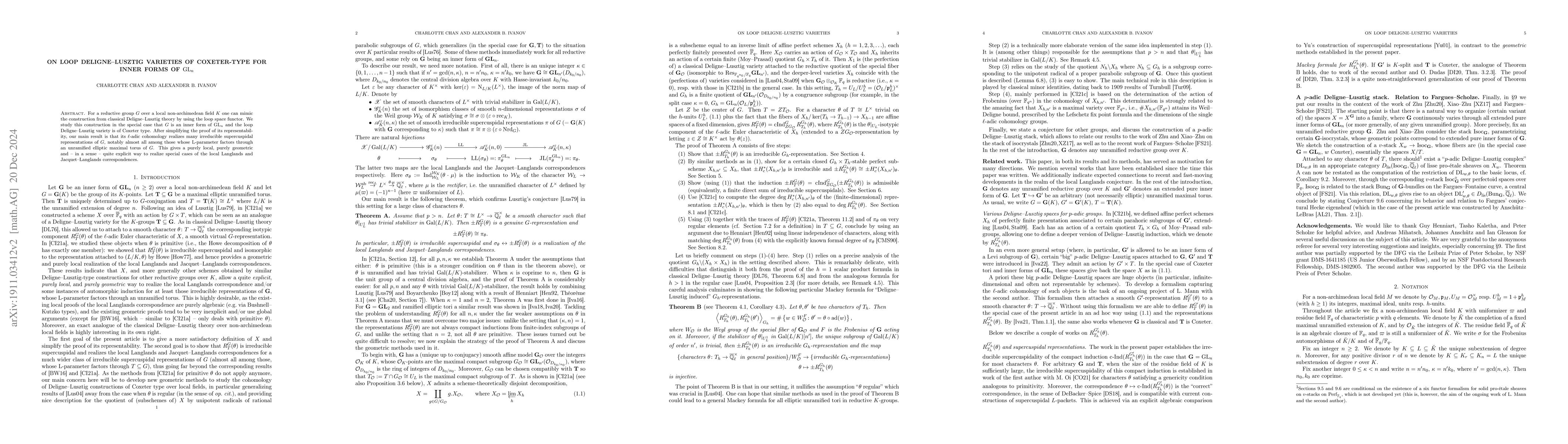 For a reductive group $G$ over a local non-archimedean field $K$ one can mimic the construction from the classical Deligne--Lusztig theory by using the loop space functor. We study this construction in special the case that $G$ is an inner form of ${\rm GL}_n$ and the loop Deligne--Lusztig variety is of Coxeter type. After simplifying the proof of its representability, our main result is that its $\ell$-adic cohomology realizes many irreducible supercuspidal representations of $G$, notably almost all among those whose L-parameter factors through an unramified elliptic maximal torus of $G$. This gives a purely local, purely geometric and -- in a sense -- quite explicit way to realize special cases of the local Langlands and Jacquet--Langlands correspondences.