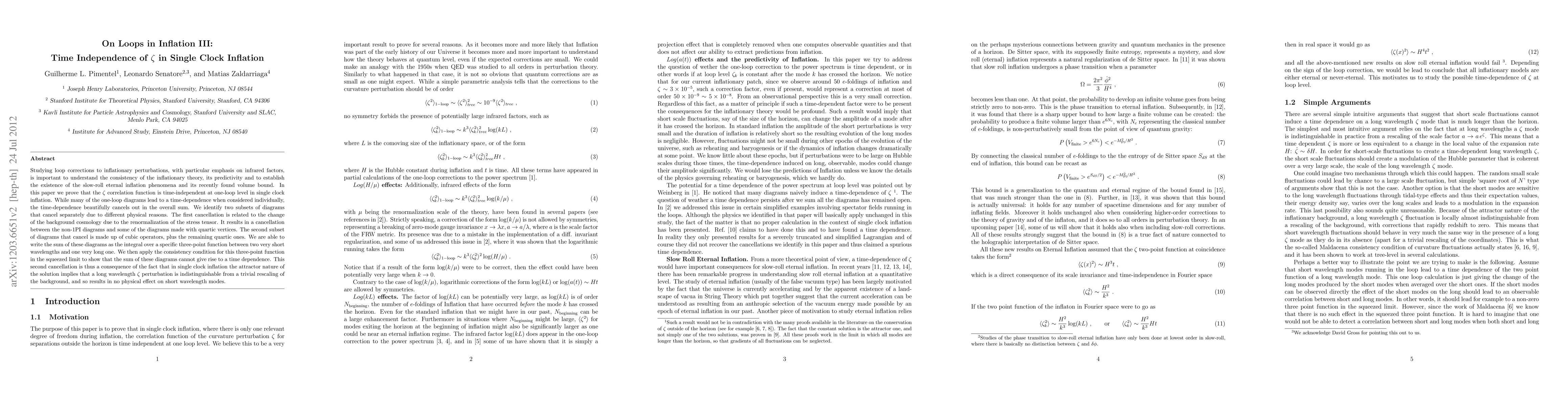 This paper demonstrates that the zeta correlation function remains time-independent at the one-loop level in single clock inflation, despite individual diagrams showing time dependence. The overall time-dependence cancels due to the distinct cancellations of two subsets of diagrams: one related to background cosmology renormalization and the other due to the attractor nature of single clock inflation.