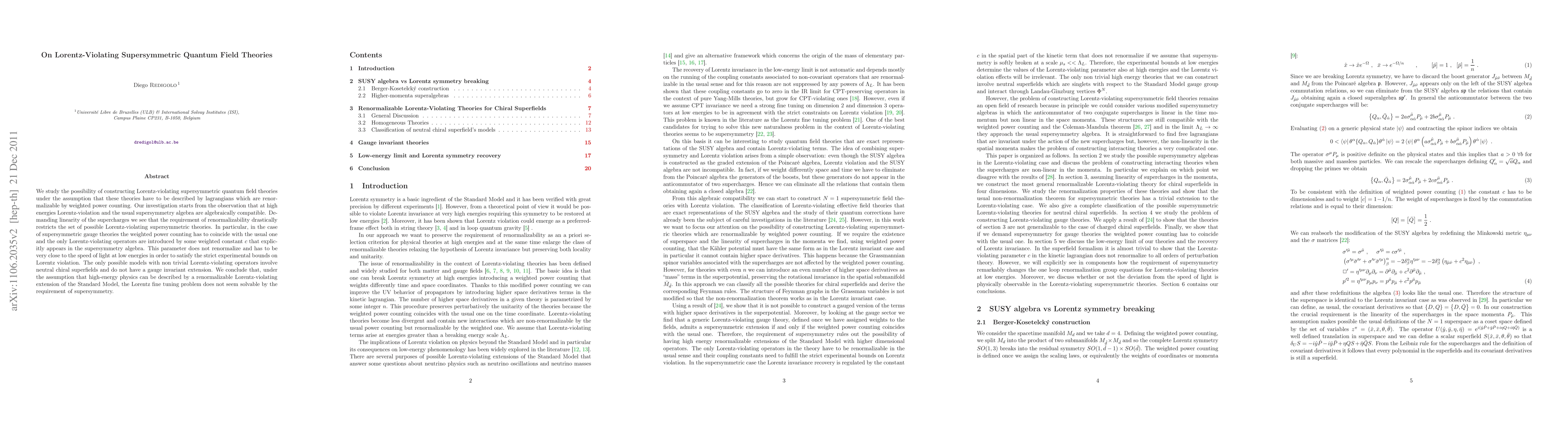 This paper investigates the construction of Lorentz-violating supersymmetric quantum field theories that are renormalizable. It finds that such theories, particularly supersymmetric gauge theories, must align with usual renormalization criteria, leading to minimal Lorentz violation confined to neutral chiral superfields.