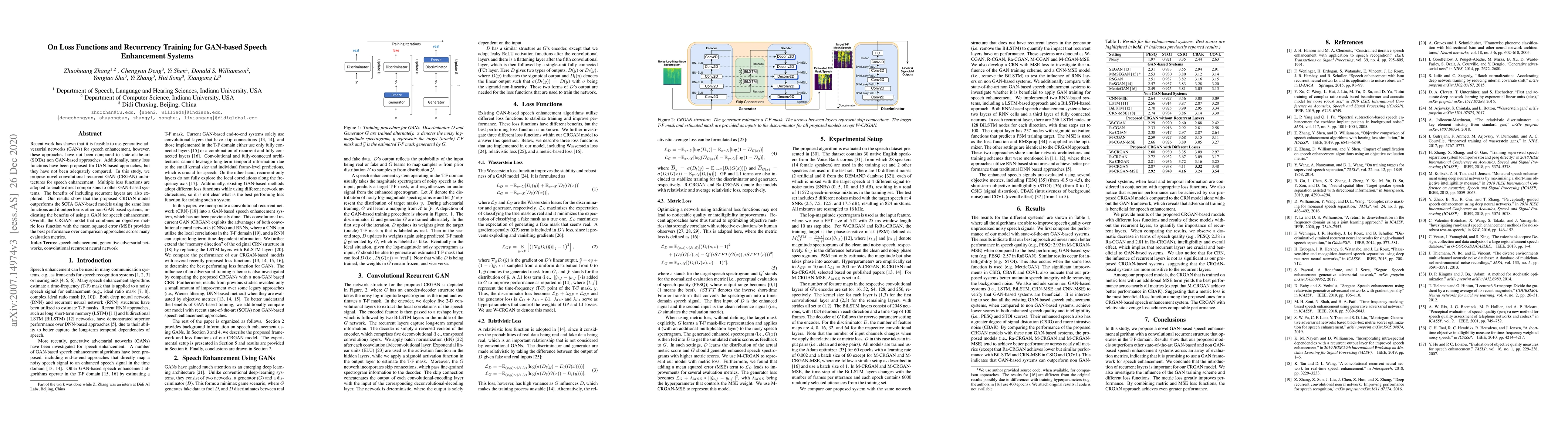 This paper proposes novel convolutional recurrent GAN (CRGAN) architectures for speech enhancement, comparing various loss functions and the benefits of recurrent layers. The study finds that the CRGAN model, especially when combined with an objective metric loss function and mean squared error (MSE), outperforms both state-of-the-art GAN-based and non-GAN-based systems.