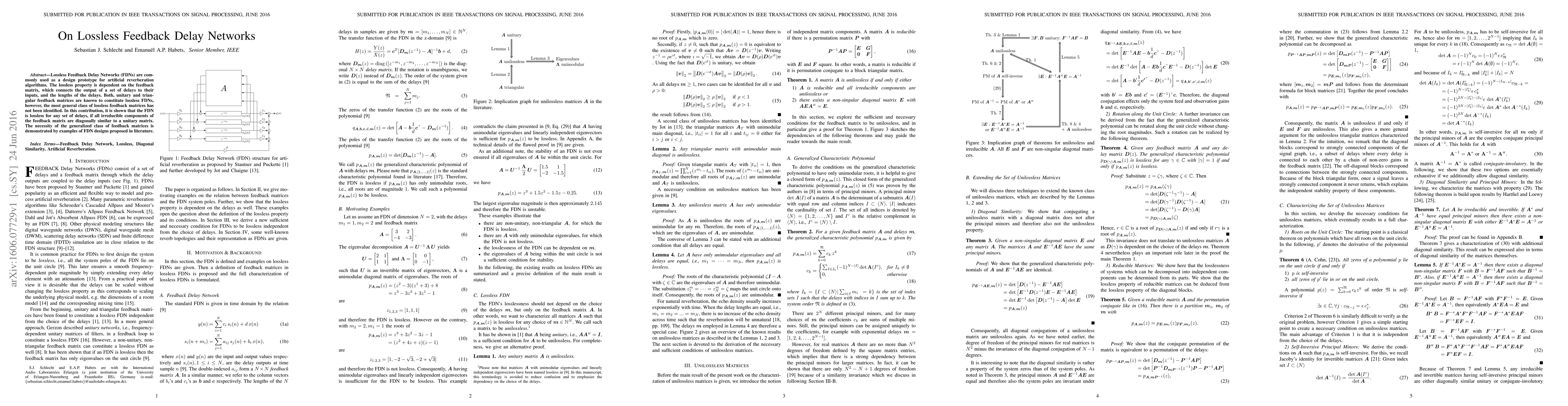 Lossless Feedback Delay Networks (FDNs) are commonly used as a design prototype for artificial reverberation algorithms. The lossless property is dependent on the feedback matrix, which connects the output of a set of delays to their inputs, and the lengths of the delays. Both, unitary and triangular feedback matrices are known to constitute lossless FDNs, however, the most general class of lossless feedback matrices has not been identified. In this contribution, it is shown that the FDN is lossless for any set of delays, if all irreducible components of the feedback matrix are diagonally similar to a unitary matrix. The necessity of the generalized class of feedback matrices is demonstrated by examples of FDN designs proposed in literature.