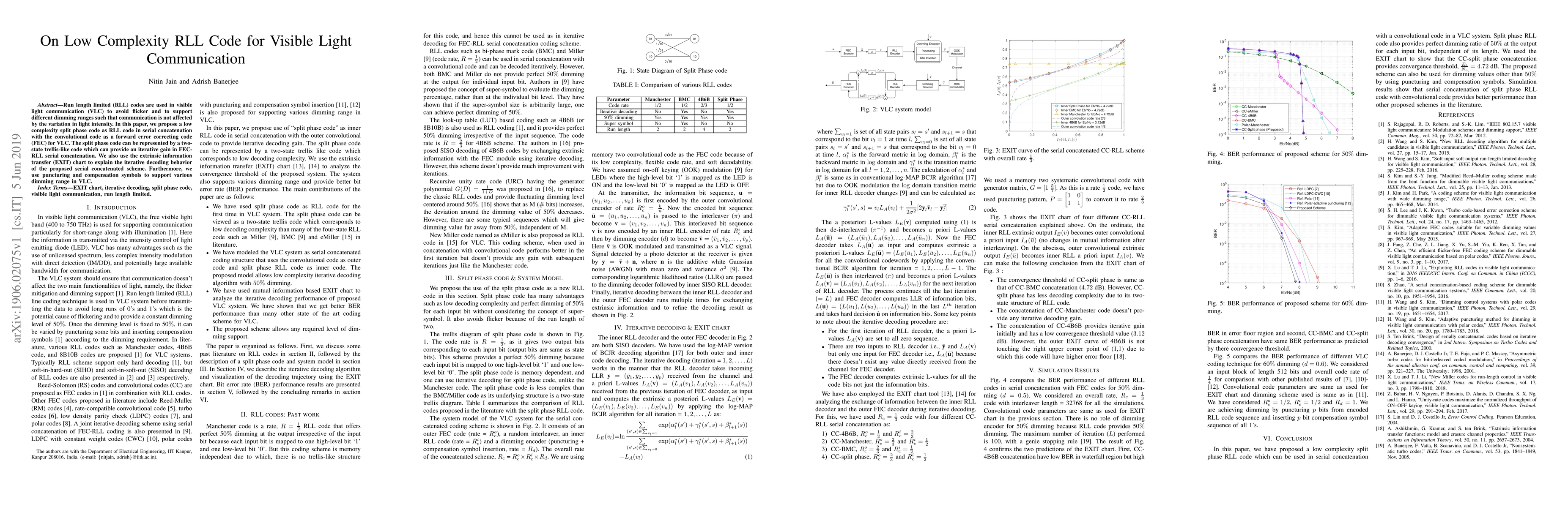 Researchers propose a low-complexity RLL code for visible light communication that improves error correction and supports various dimming ranges. The code uses serial concatenation with convolutional coding and puncturing to enhance its performance.