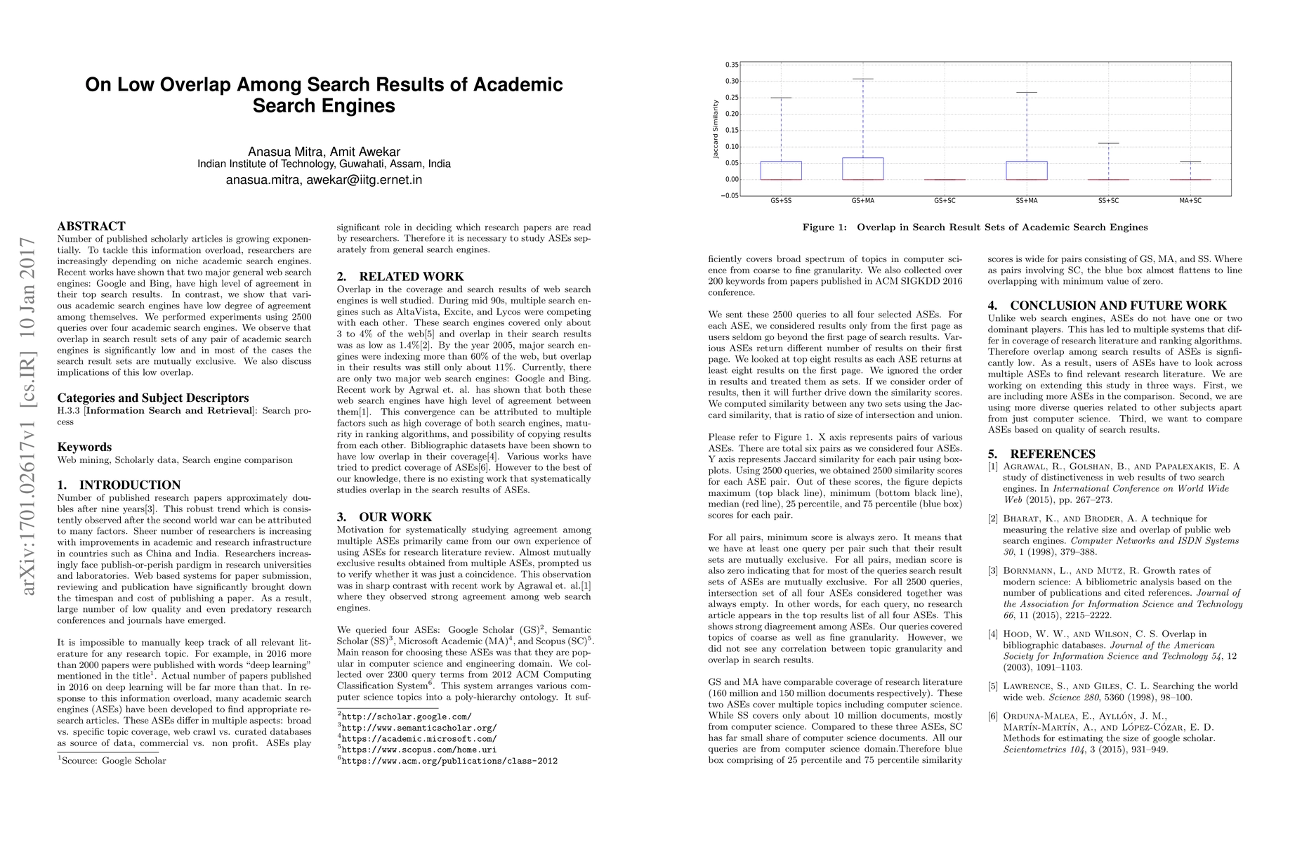Academic search engines have low overlap in their results, meaning that most search queries yield unique results across different engines. This finding has implications for researchers seeking to find relevant information in a crowded academic landscape.
