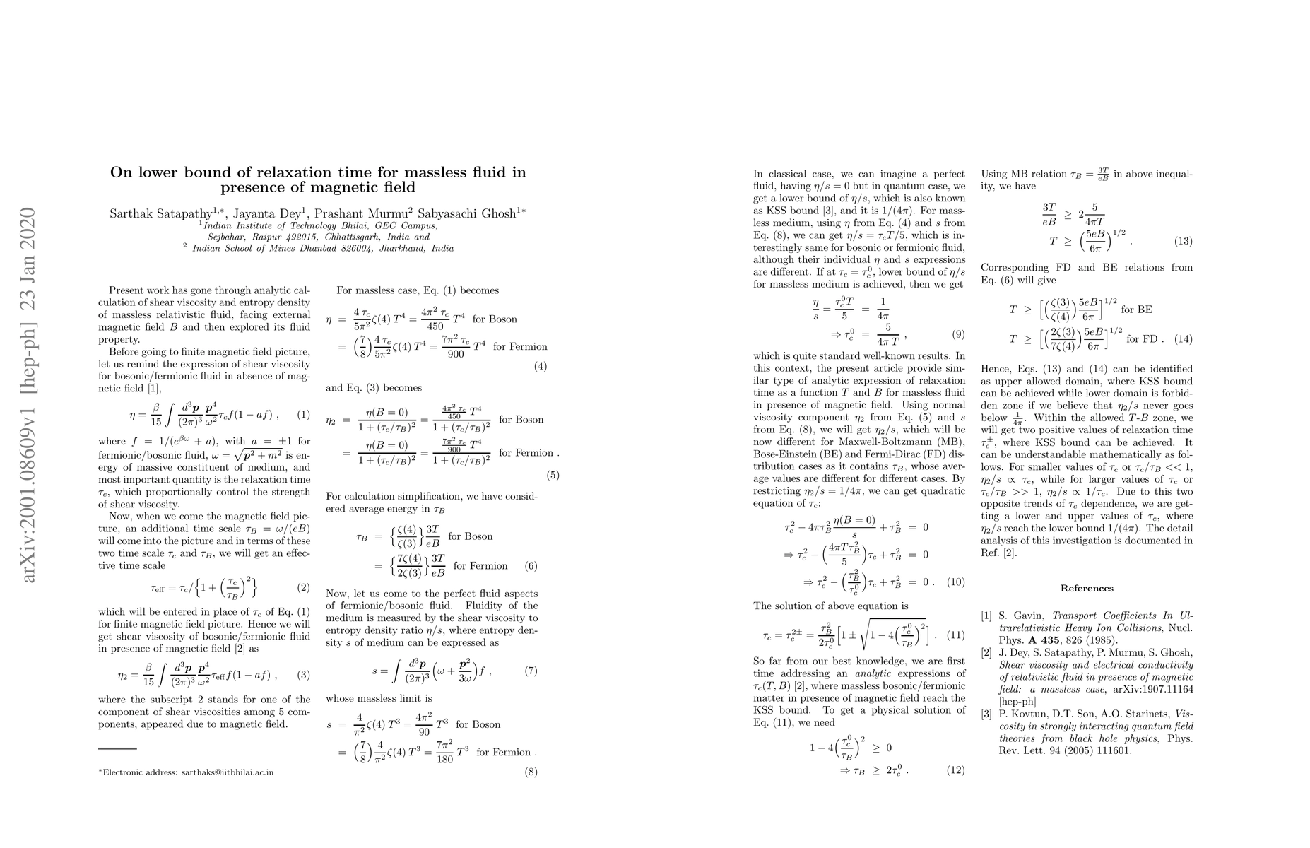 Researchers found a lower bound of 0.08 for relaxation time in massless fluids with magnetic fields, setting an upper limit for the ratio of shear viscosity to entropy density.
