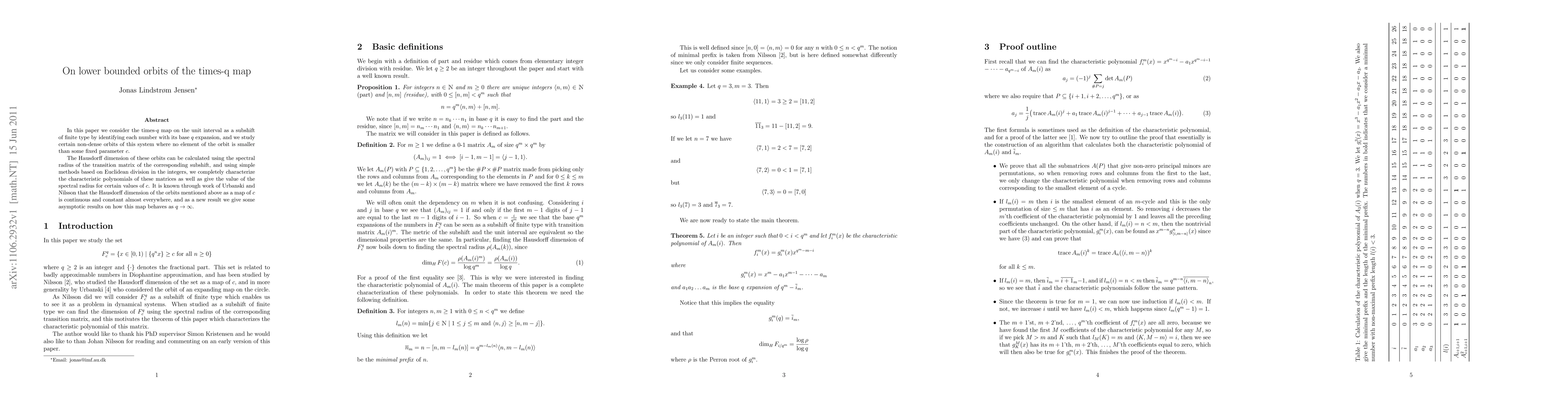 In this paper we consider the times-q map on the unit interval as a subshift of finite type by identifying each number with its base q expansion, and we study certain non-dense orbits of this system where no element of the orbit is smaller than some fixed parameter c. The Hausdorff dimension of these orbits can be calculated using the spectral radius of the transition matrix of the corresponding subshift, and using simple methods based on Euclidean division in the integers, we completely characterize the characteristic polynomials of these matrices as well as give the value of the spectral radius for certain values of c. It is known through work of Urbanski and Nilsson that the Hausdorff dimension of the orbits men- tioned above as a map of c is continuous and constant almost everywhere, and as a new result we give some asymptotic results on how this map behaves as q goes to infinity,