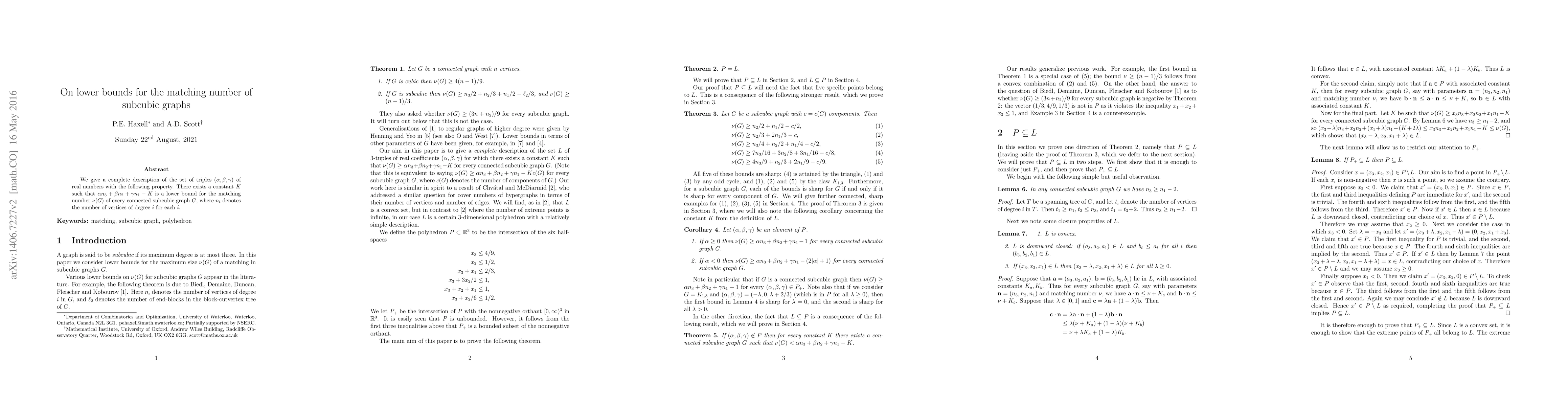 Researchers provide a lower bound for matching numbers in subcubic graphs, showing that certain real-number combinations guarantee a minimum matching size for every connected graph.