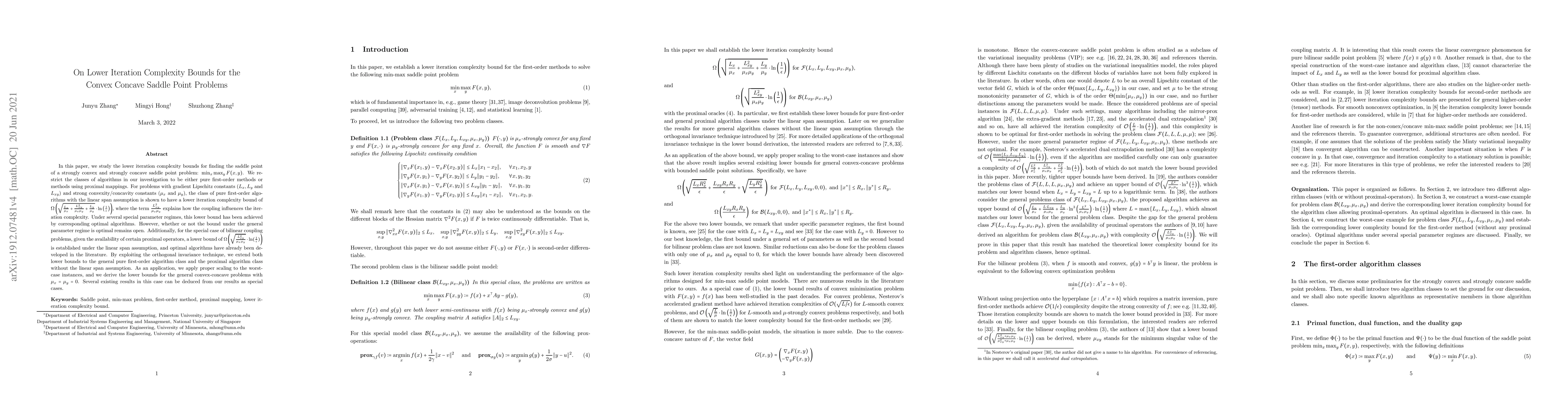 This paper investigates lower iteration complexity bounds for solving strongly convex and strongly concave saddle point problems using first-order methods or proximal mappings. It presents a new lower bound for pure first-order algorithms and explores special cases, including bilinear coupling problems, where optimal algorithms have been developed.