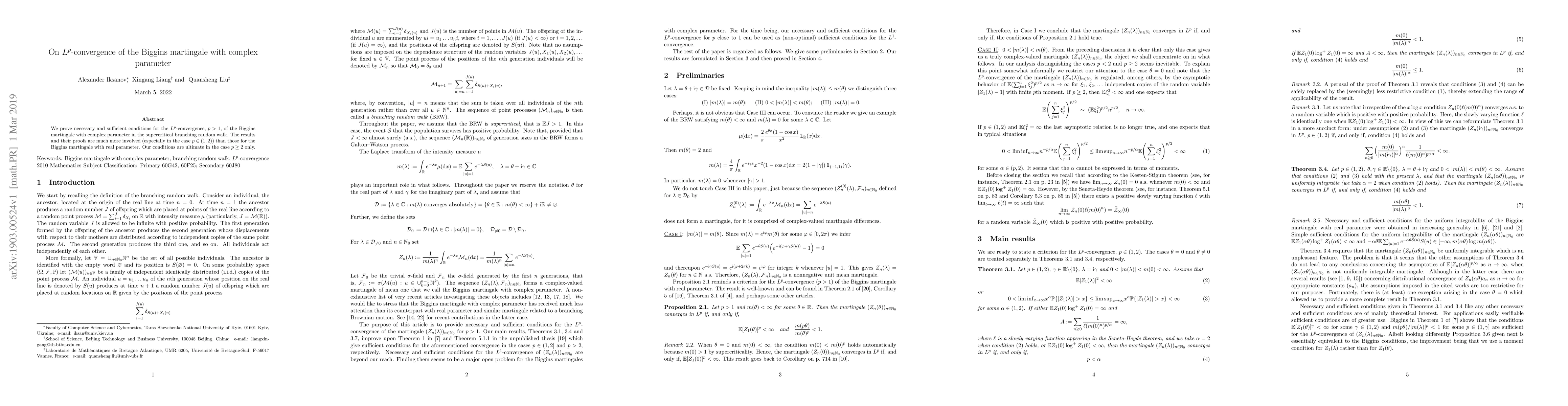 This paper establishes necessary and sufficient conditions for the $L^p$-convergence ($p>1$) of the Biggins martingale with a complex parameter in supercritical branching random walk, with more intricate proofs especially for $p\in (1,2)$, and ultimate conditions only for $p\geq 2$.