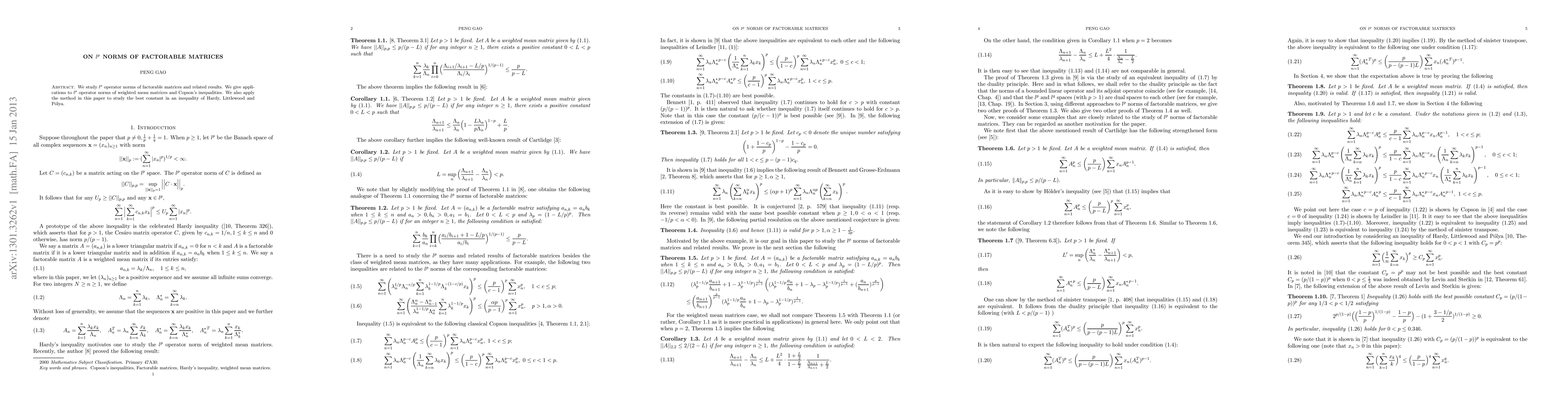 This paper investigates $l^p$ operator norms of factorable matrices, applying these findings to weighted mean matrices and Copson's inequalities, and uses the method to determine the best constant in a Hardy-Littlewood-Pólya inequality.