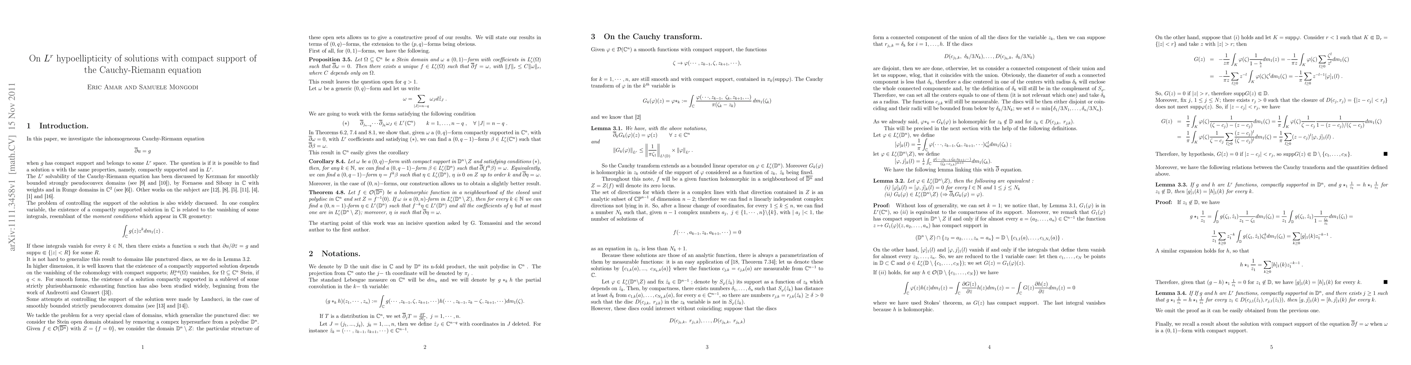 In one complex variable, the existence of a compactly supported solution to the Cauchy-Riemann equation is related to the vanishing of certain integrals of the data; trying to generalize this approach, we find an explicit construction, via convolution, for a compactly supported solution in $\mathbb{C}^n$, which allows to estimate the $L^p$ norm of the solution. We also investigate the possible generalizations of this method to domains of the form $P\setminus Z$, where $P$ is a polydisc and $Z$ is the zero locus of some holomorphic function.