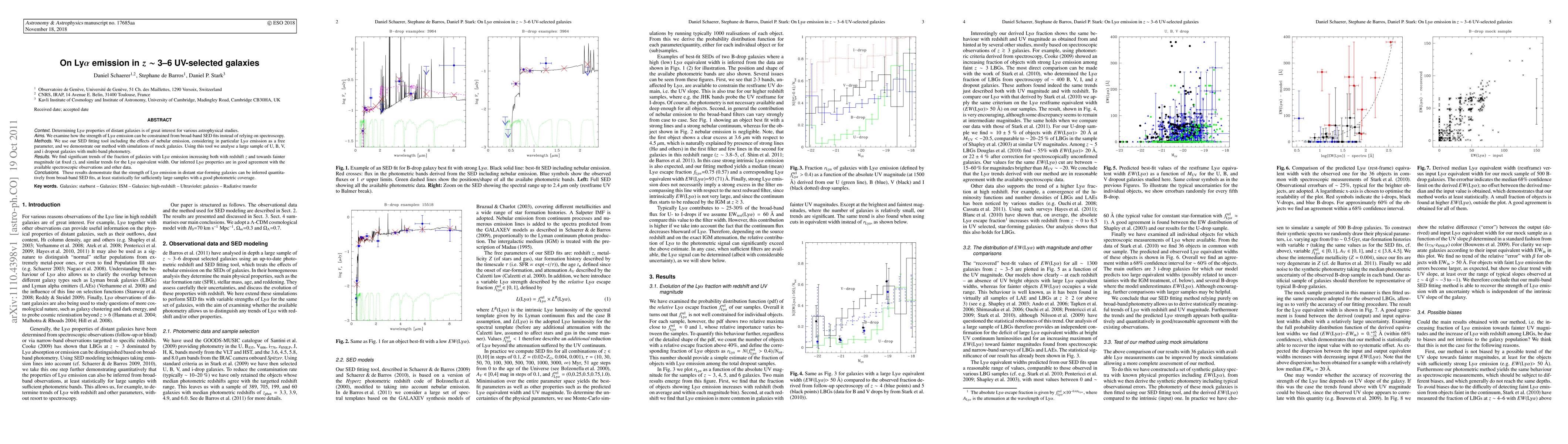 This study explores the strength of Lya emission in z~3-6 UV-selected galaxies using broad-band SED fits instead of spectroscopy. The results show an increasing fraction of Lya emission with redshift and fainter magnitudes, aligning well with spectroscopic observations.