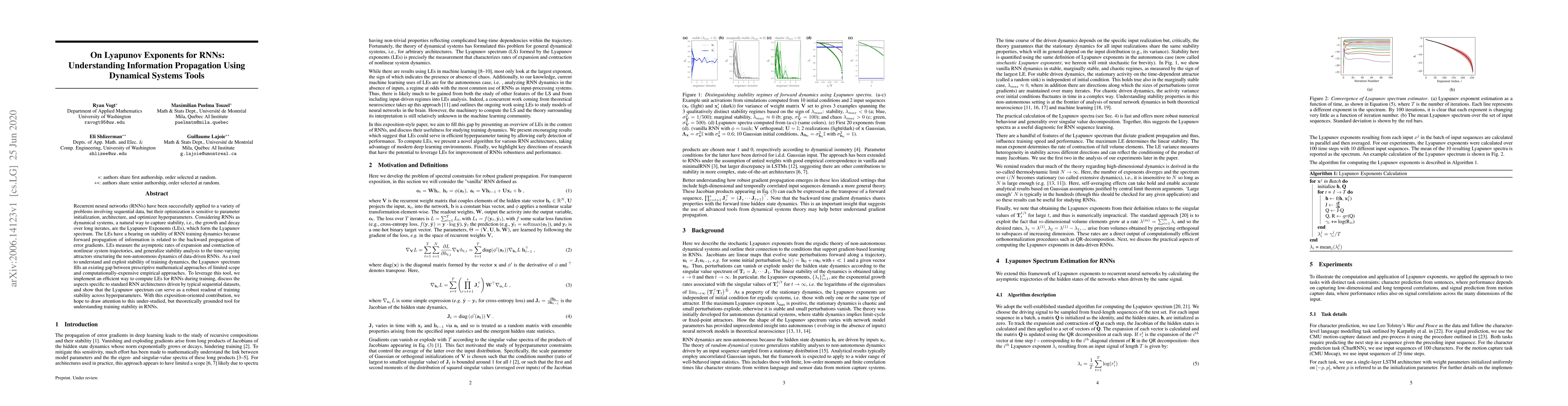 This paper explores the use of Lyapunov Exponents (LEs) as a dynamical systems tool to analyze the stability of training dynamics in Recurrent Neural Networks (RNNs). It proposes an efficient method for computing LEs during training and demonstrates that the Lyapunov spectrum can robustly indicate training stability across various hyperparameters.