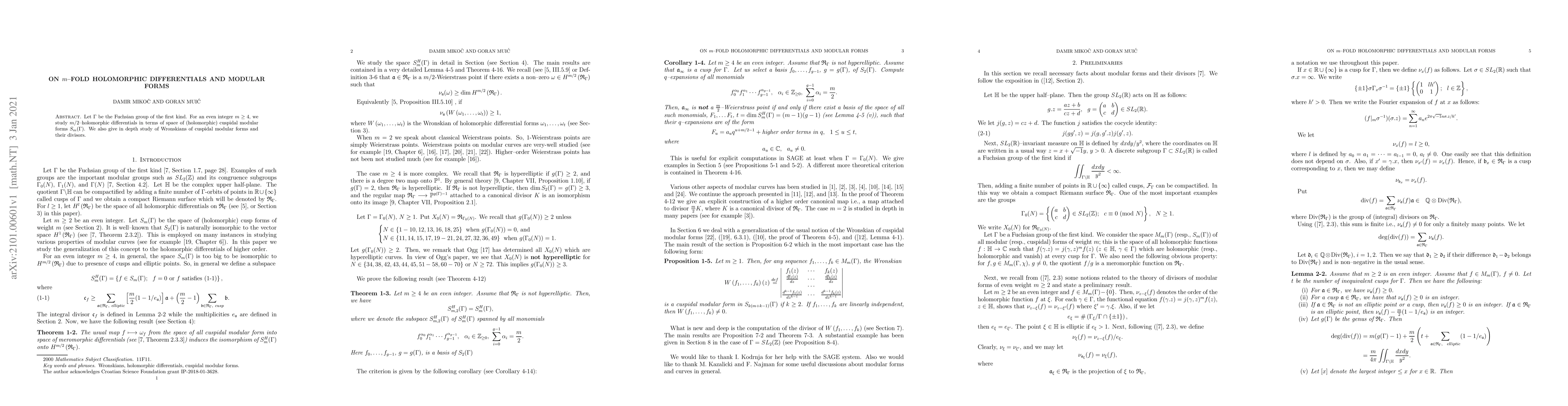 This paper explores m/2-holomorphic differentials in terms of modular forms, with a focus on their Wronskians and divisors, providing new insights into the relationship between these mathematical objects.