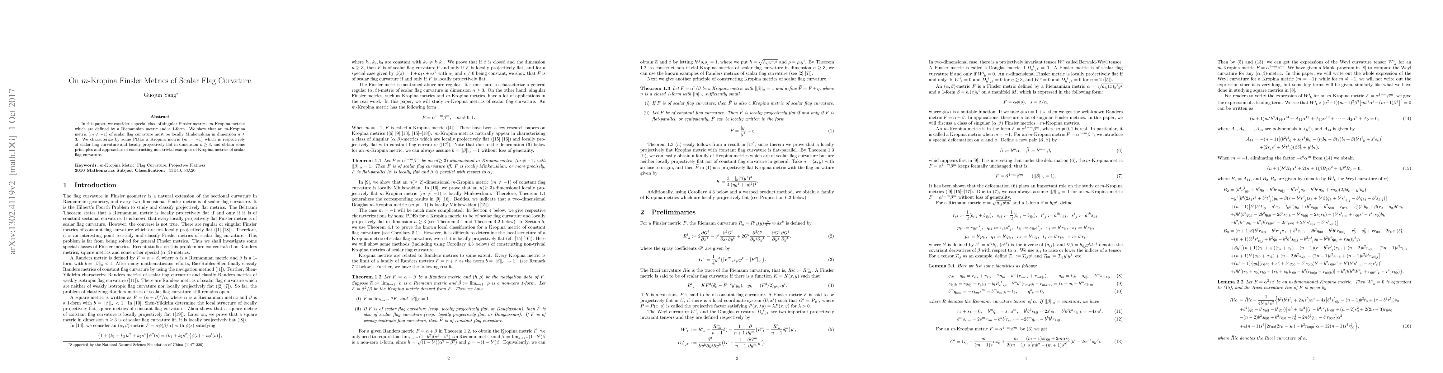 This paper explores $m$-Kropina Finsler metrics defined by a Riemannian metric and a $1$-form, proving that $m$-Kropina metrics with scalar flag curvature are locally Minkowskian in dimensions $n\ge 3$ for $m\ne -1$. It also characterizes the special case for $m=-1$ and provides methods for constructing non-trivial examples of such metrics.