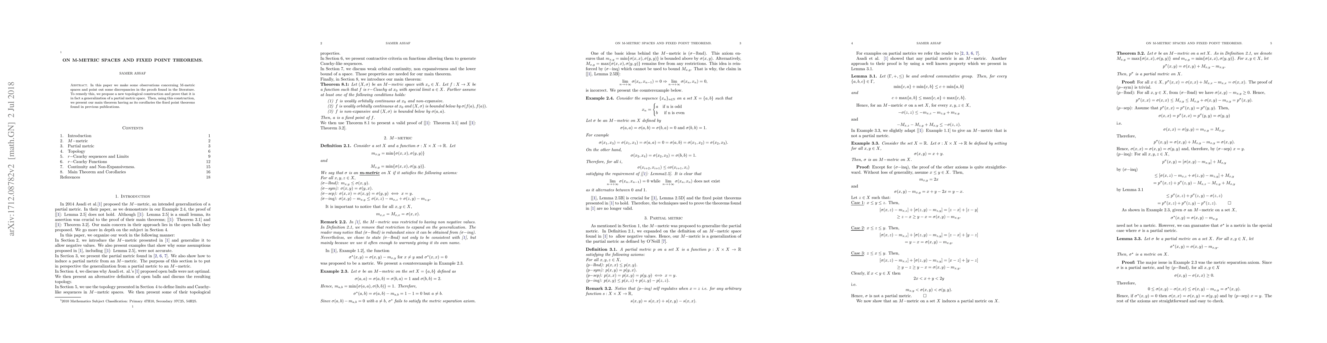 This paper identifies and corrects discrepancies in existing proofs regarding m-metric spaces, proposes a new topological construction, and demonstrates its generalization of partial metric spaces. The new construction leads to a main theorem that encompasses several previously established fixed point theorems.