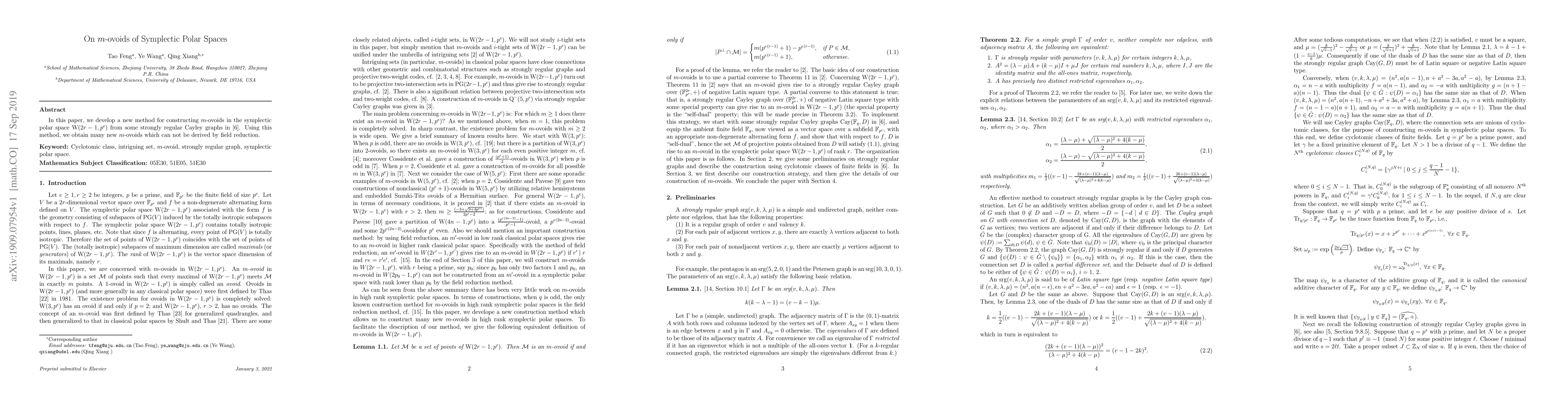 This paper introduces a novel method to construct $m$-ovoids in symplectic polar spaces $\W(2r-1,\q)$ utilizing strongly regular Cayley graphs, yielding new $m$-ovoids not obtainable through traditional field reduction techniques.