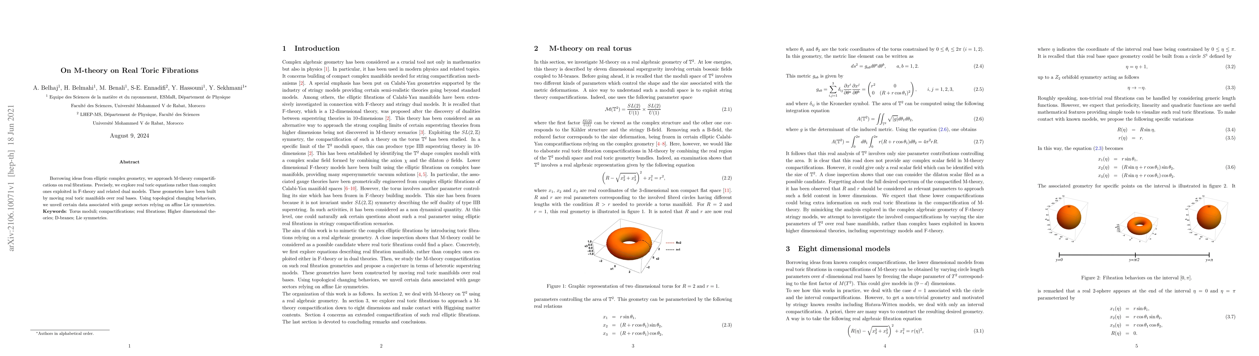 Borrowing ideas from elliptic complex geometry, we approach M-theory compactifications on real toric fibrations. Precisely, we explore real toric equations rather than complex ones exploited in F-theory and related dual models. These geometries have been built by moving real circles over real bases. Using topological changing behaviors, we unveil certain data associated with gauge sectors relying on affine Lie symmetries.