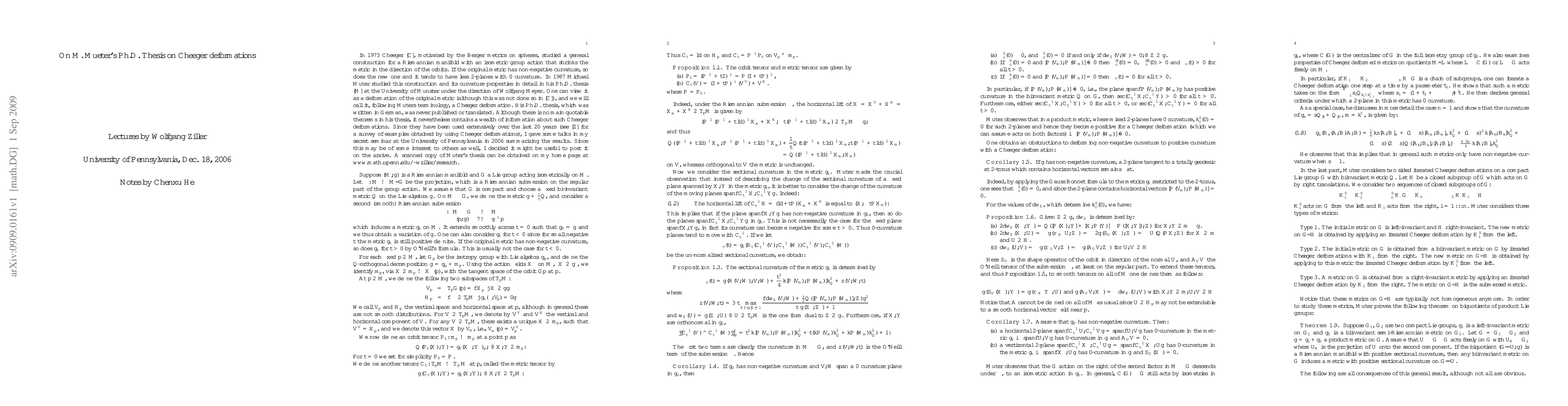 These are notes of a talk I gave in a seminar at the University of Pennsylvania summarizing results in the Ph.D. thesis of Michael Mueter obtained under the direction of Wolfgang Meyer at the University of Muenster. His thesis on "Kruemmungserhoehende Deformationen mittels Gruppenaktionen" examines in detail curvature properties of so called Cheeger deformations. Such deformations have been a crucial ingredient in non-negative and positive curvature constructions. His thesis contains a wealth of interesting properties of such deformations, but since it was never published, is only known to a few experts. I have no intention to publish these notes, but post them as a service to the public. A scanned version of his thesis (written in German) is available on my homepage.