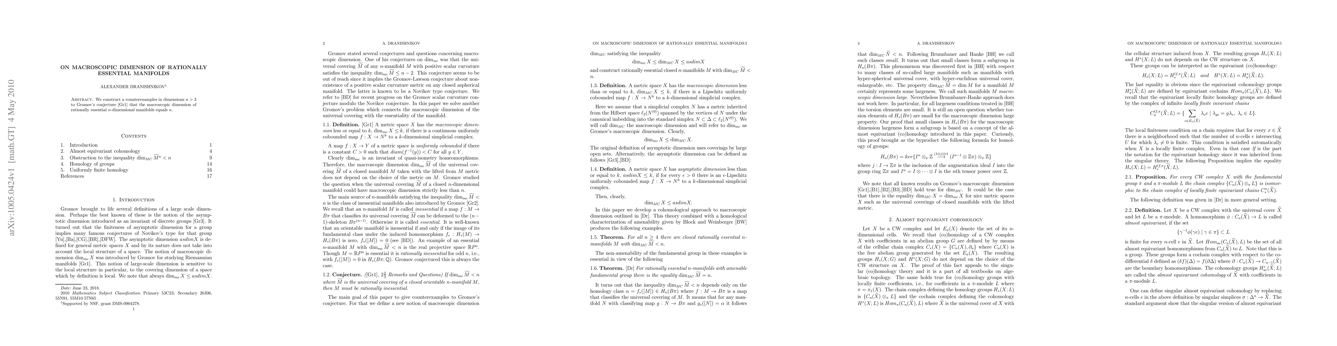Researchers have found counterexamples to Gromov's conjecture for n-dimensional manifolds in dimensions greater than 3, disproving the idea that rationally essential manifolds have a macroscopic dimension of n.
