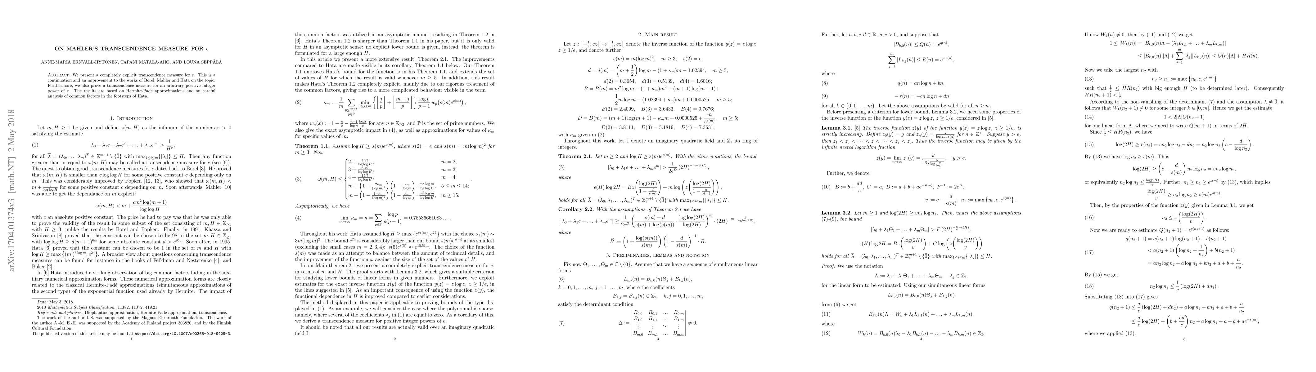 We present a completely explicit transcendence measure for $e$. This is a continuation and an improvement to the works of Borel, Mahler and Hata on the topic. Furthermore, we also prove a transcendence measure for an arbitrary positive integer power of $e$. The results are based on Hermite-Pad\'e approximations and on careful analysis of common factors in the footsteps of Hata.