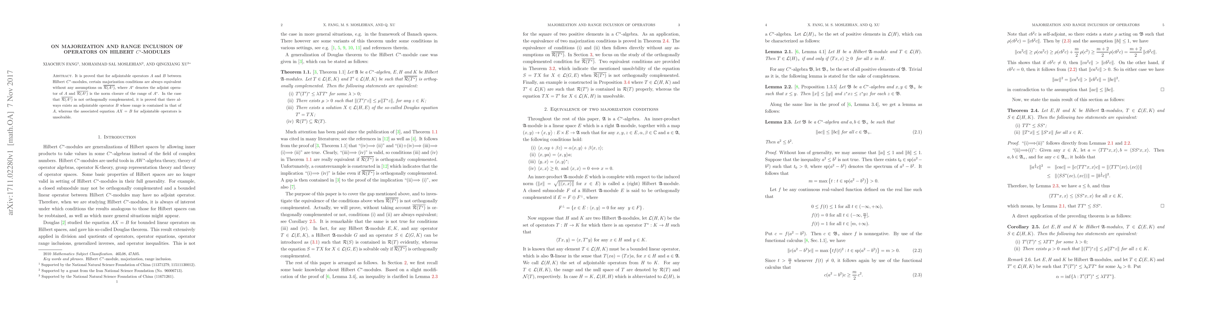It is proved that for adjointable operators $A$ and $B$ between Hilbert $C^*$-modules, certain majorization conditions are always equivalent without any assumptions on $\overline{\mathcal{R}(A^*)}$, where $A^*$ denotes the adjoint operator of $A$ and $\overline{\mathcal{R}(A^*)}$ is the norm closure of the range of $A^*$. In the case that $\overline{{\mathcal R}(A^*)}$ is not orthogonally complemented, it is proved that there always exists an adjointable operator $B$ whose range is contained in that of $A$, whereas the associated equation $AX=B$ for adjointable operators is unsolvable.